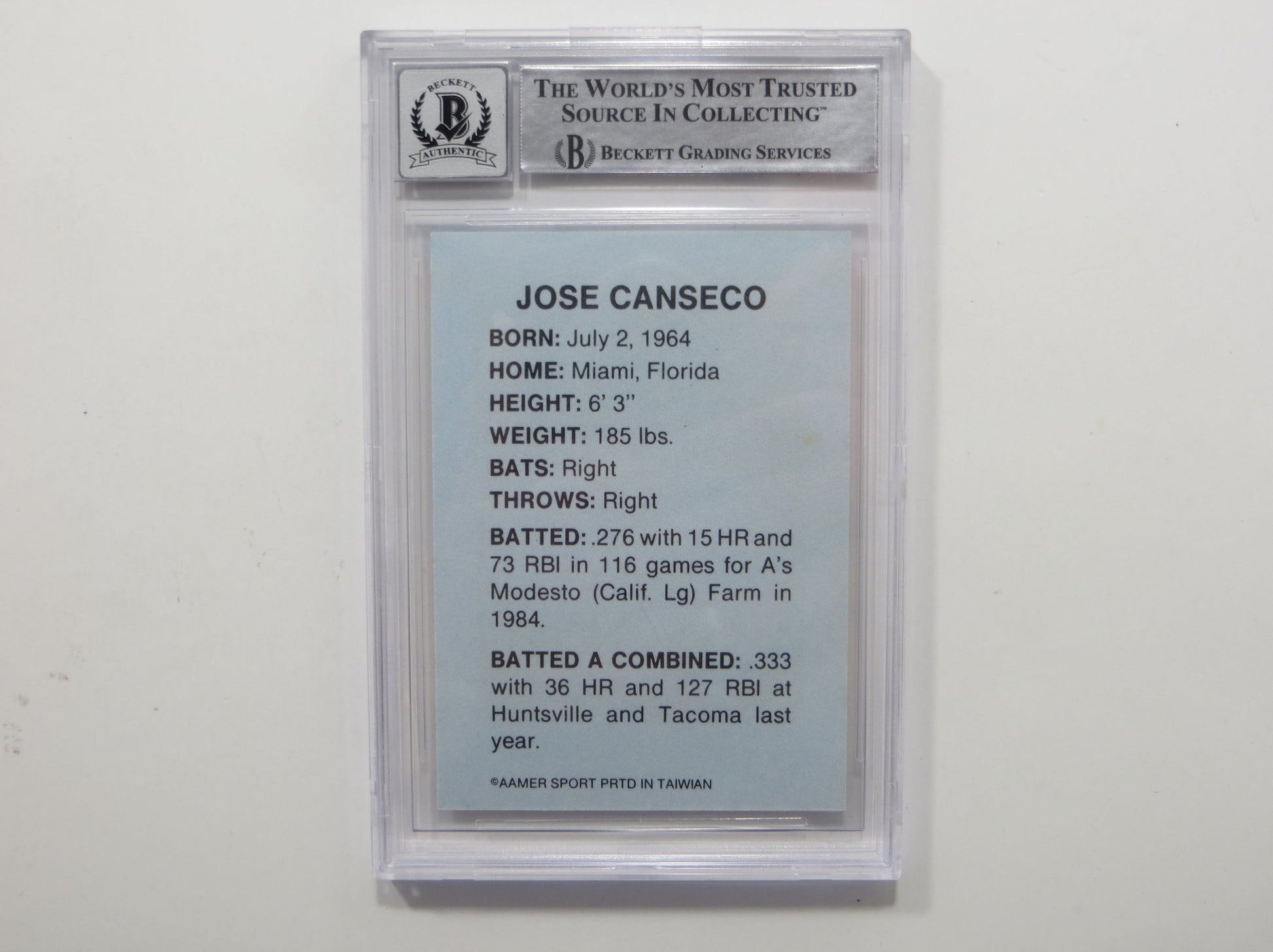 JOSE CANSECO SIGNED BGS BAS SLAB HUNTSVILLE STARS AAMER Sports CARD Auto 10