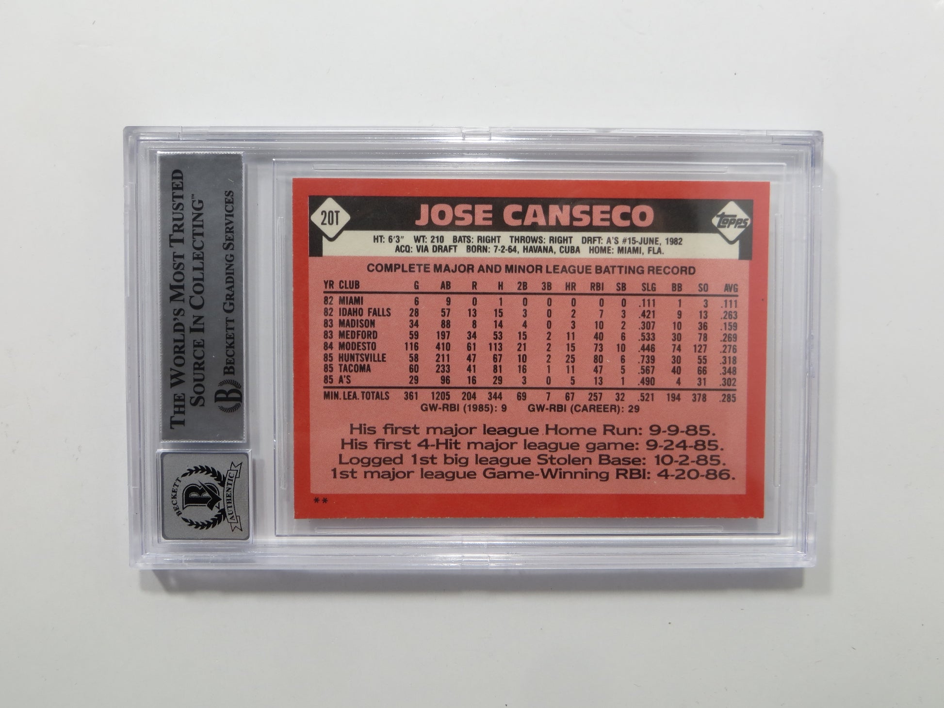 JOSE CANSECO SIGNED BGS BAS SLAB 1986 TOPPS TRADED #20T XRC A's Auto 10