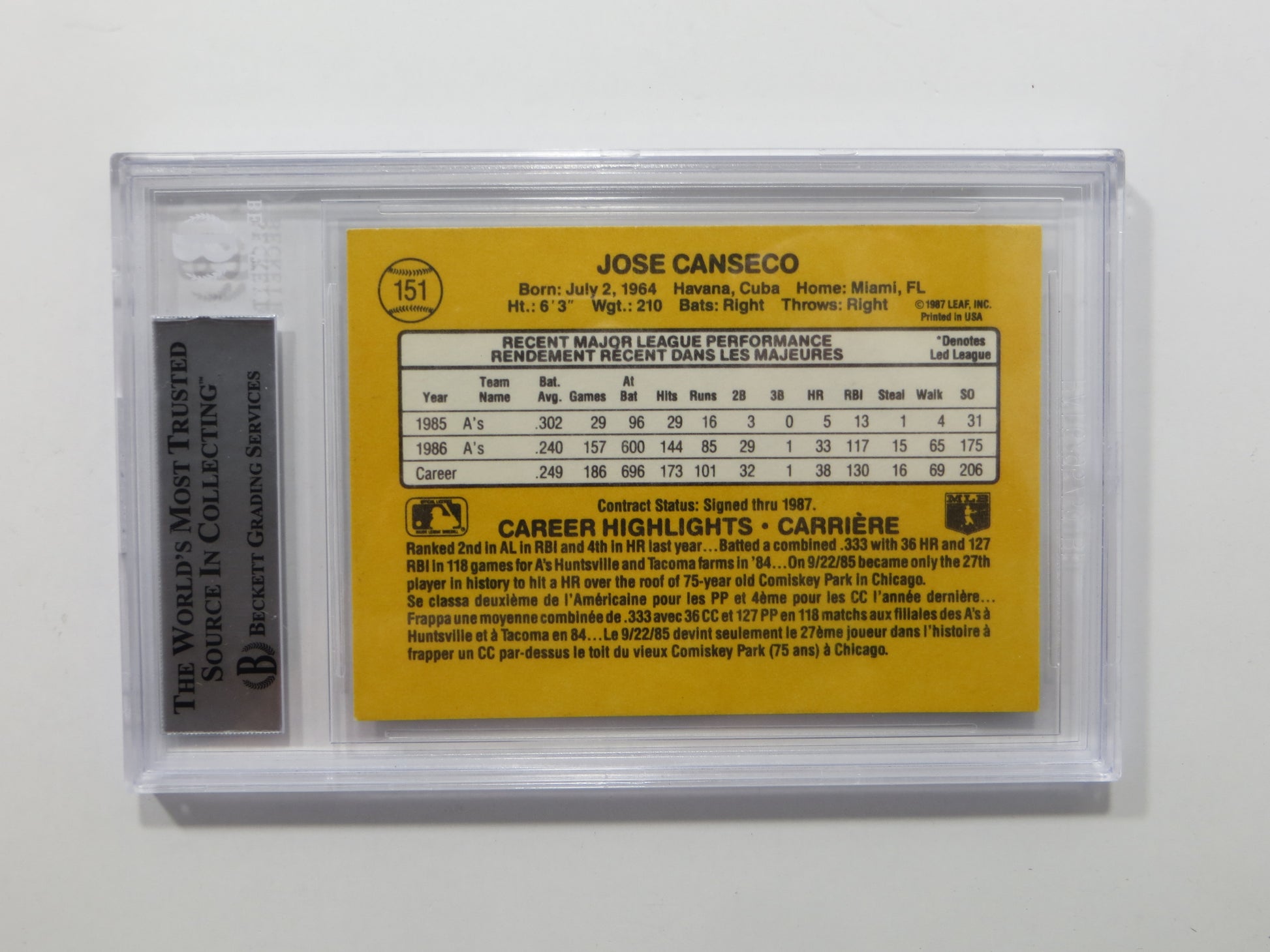 JOSE CANSECO SIGNED BGS BAS SLAB 1987 LEAF #39 A's Auto