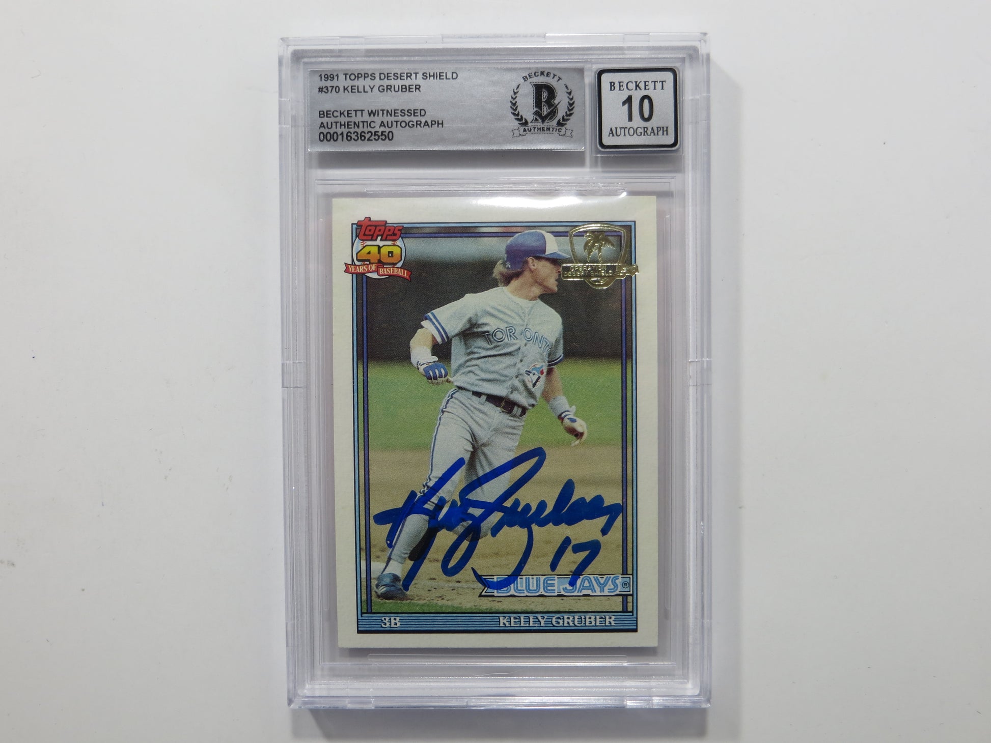 KELLY GRUBER SIGNED BGS BAS SLAB 1991 TOPPS DESERT SHIELD Auto 10 BLUE JAYS