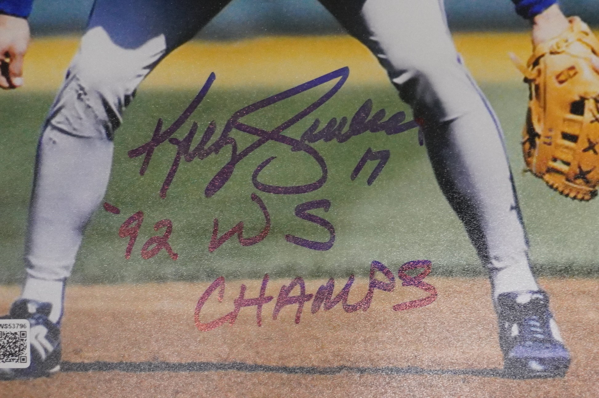 KELLY GRUBER Signed 8x10 Photo TORONTO BLUE JAYS w/"92 W.S Champs" BAS COA