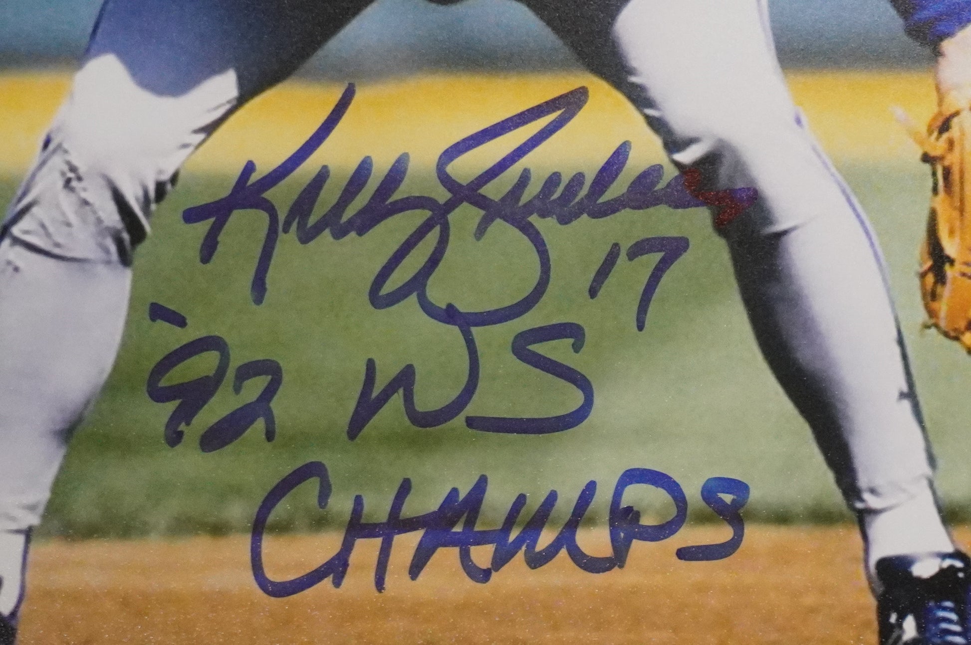 KELLY GRUBER Signed 8x10 Photo TORONTO BLUE JAYS w/"92 W.S Champs" BAS COA