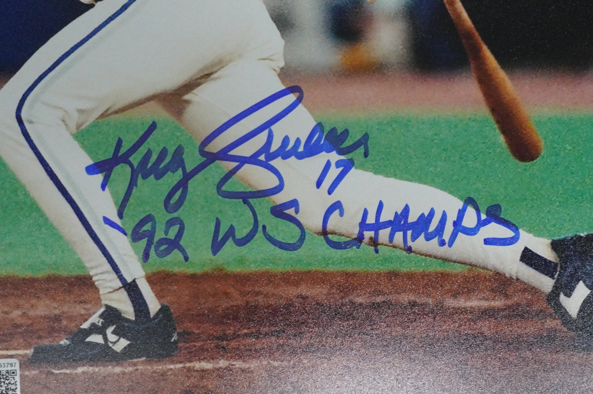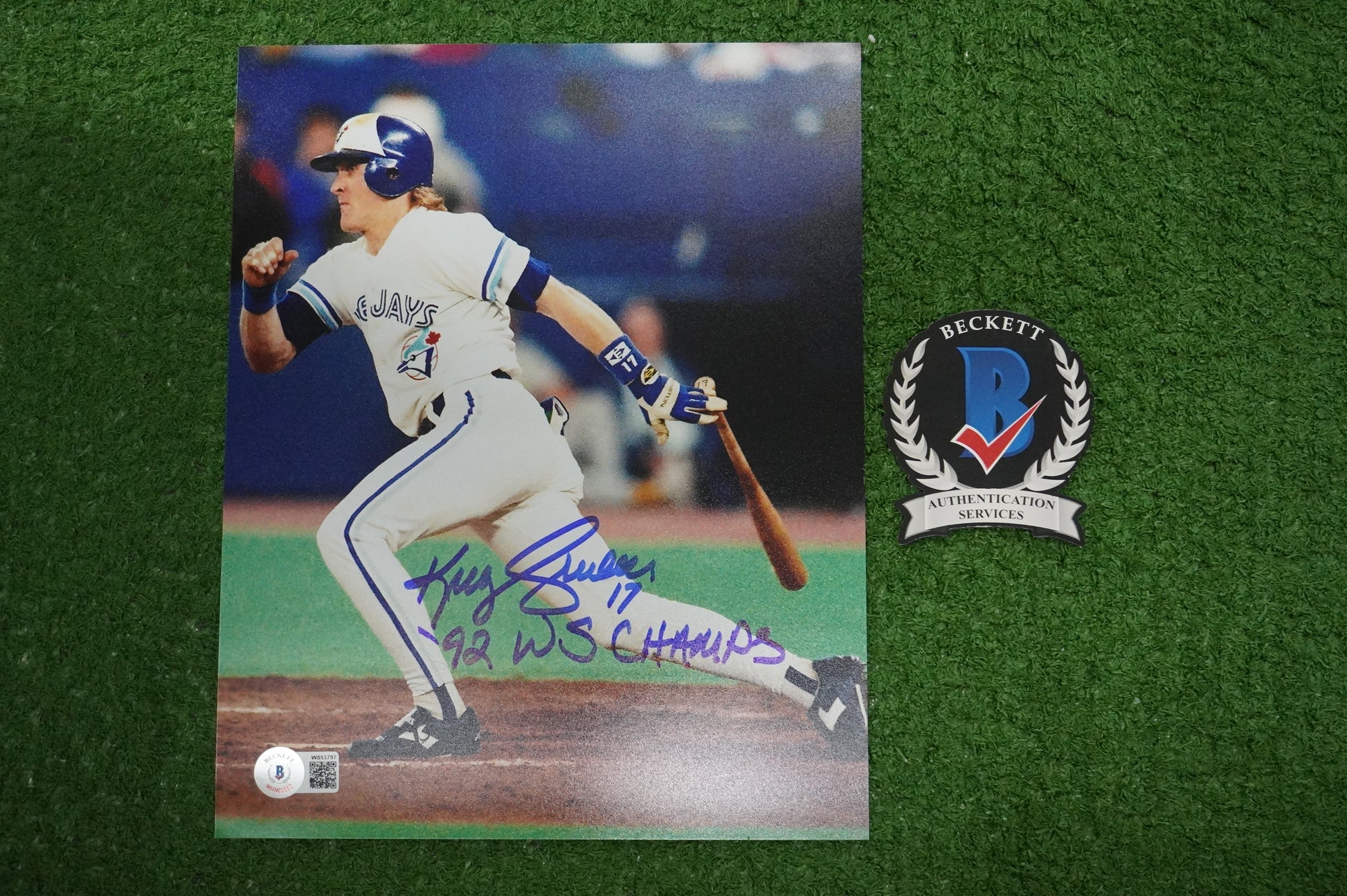 KELLY GRUBER Signed 8x10 AT-BAT Photo TORONTO BLUE JAYS w/"92 W.S Champs" BAS