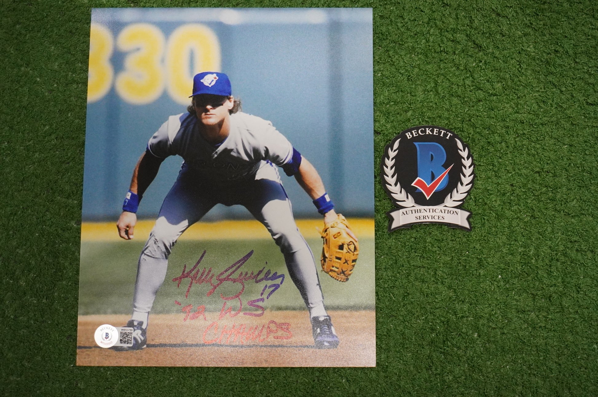 KELLY GRUBER Signed 8x10 Photo TORONTO BLUE JAYS w/"92 W.S Champs" BAS COA