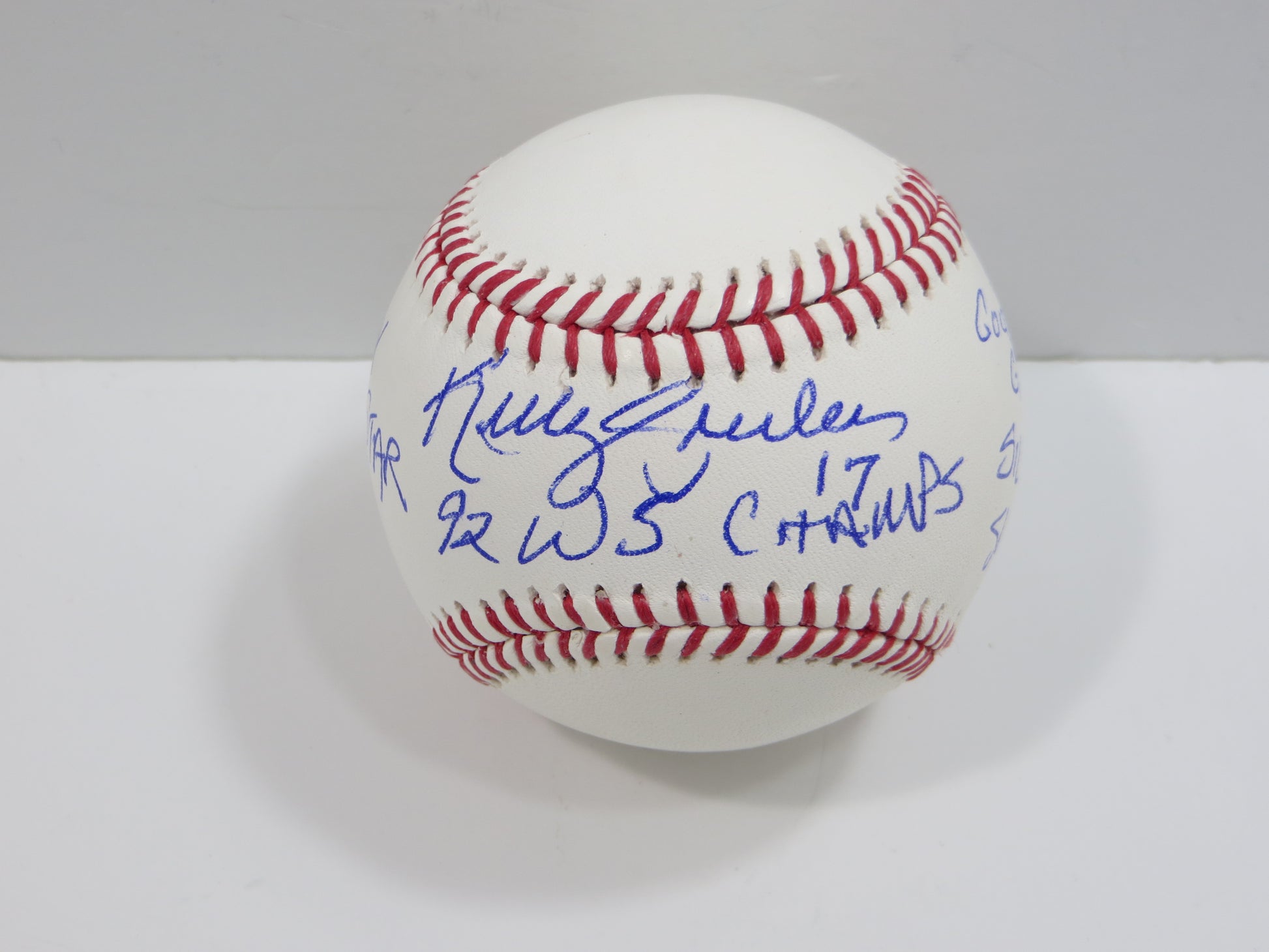 KELLY GRUBER SIGNED RAWLINGS OFFICIAL MAJOR LEAGUE BASEBALL TORONTO BLUE JAYS BAS