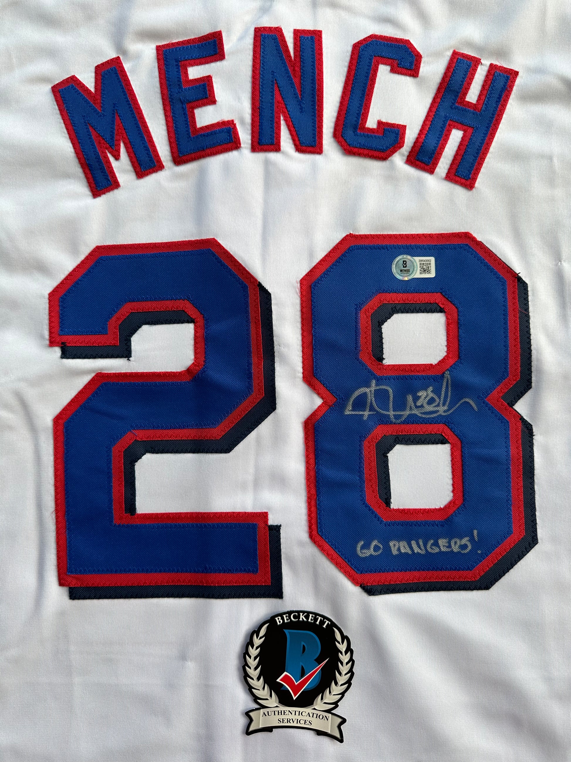 KEVIN MENCH TEXAS RANGERS SIGNED JERSEY w/GO RANGERS! BAS COA