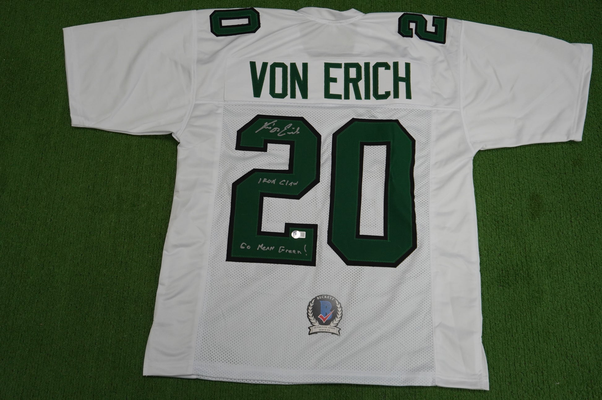 KEVIN VON ERICH ADKISSON NORTH TEXAS MEAN GREEN SIGNED White JERSEY Size L BAS