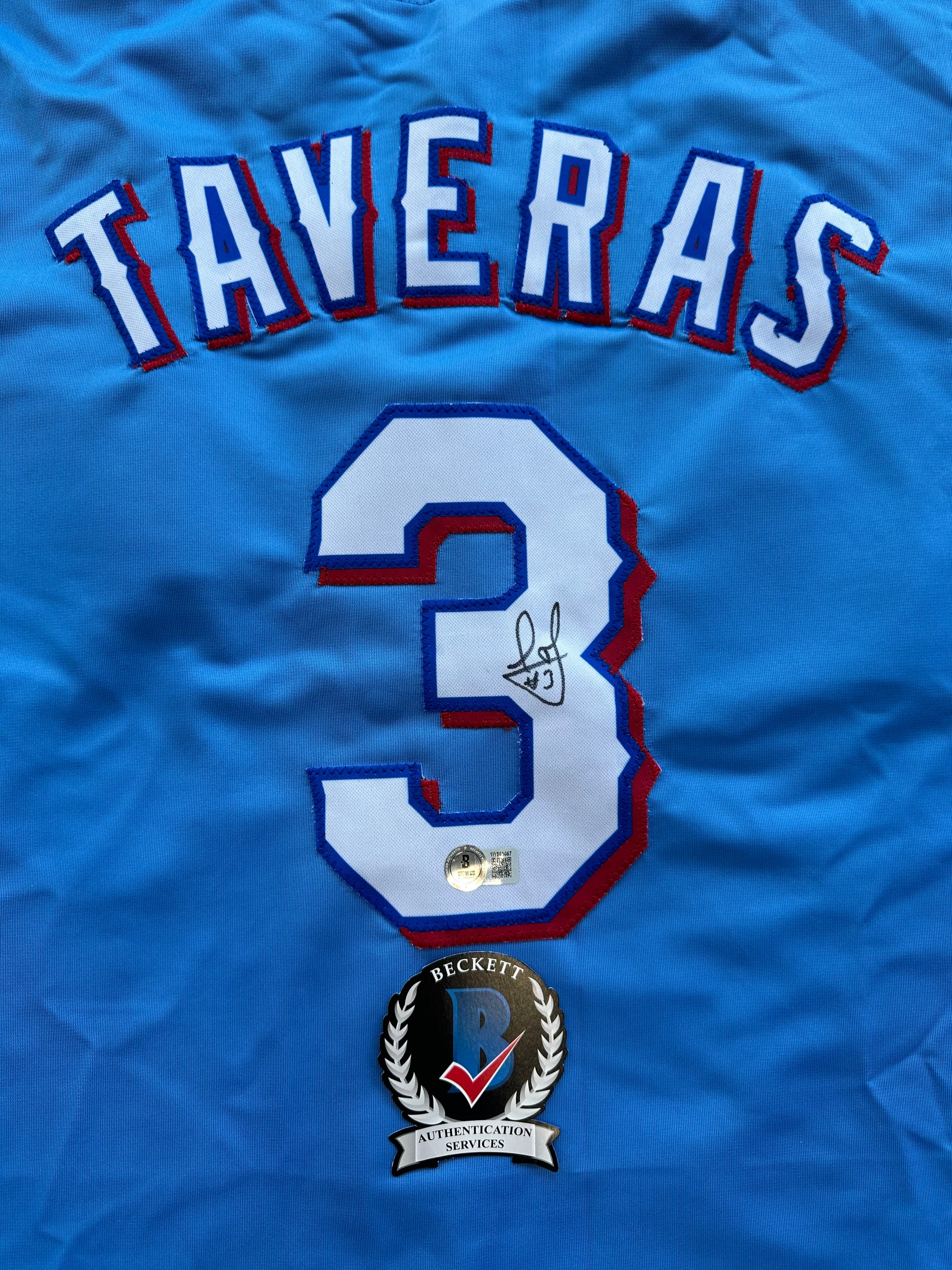 LEODY TAVERAS TEXAS RANGERS SIGNED Light Blue JERSEY size XL BAS COA