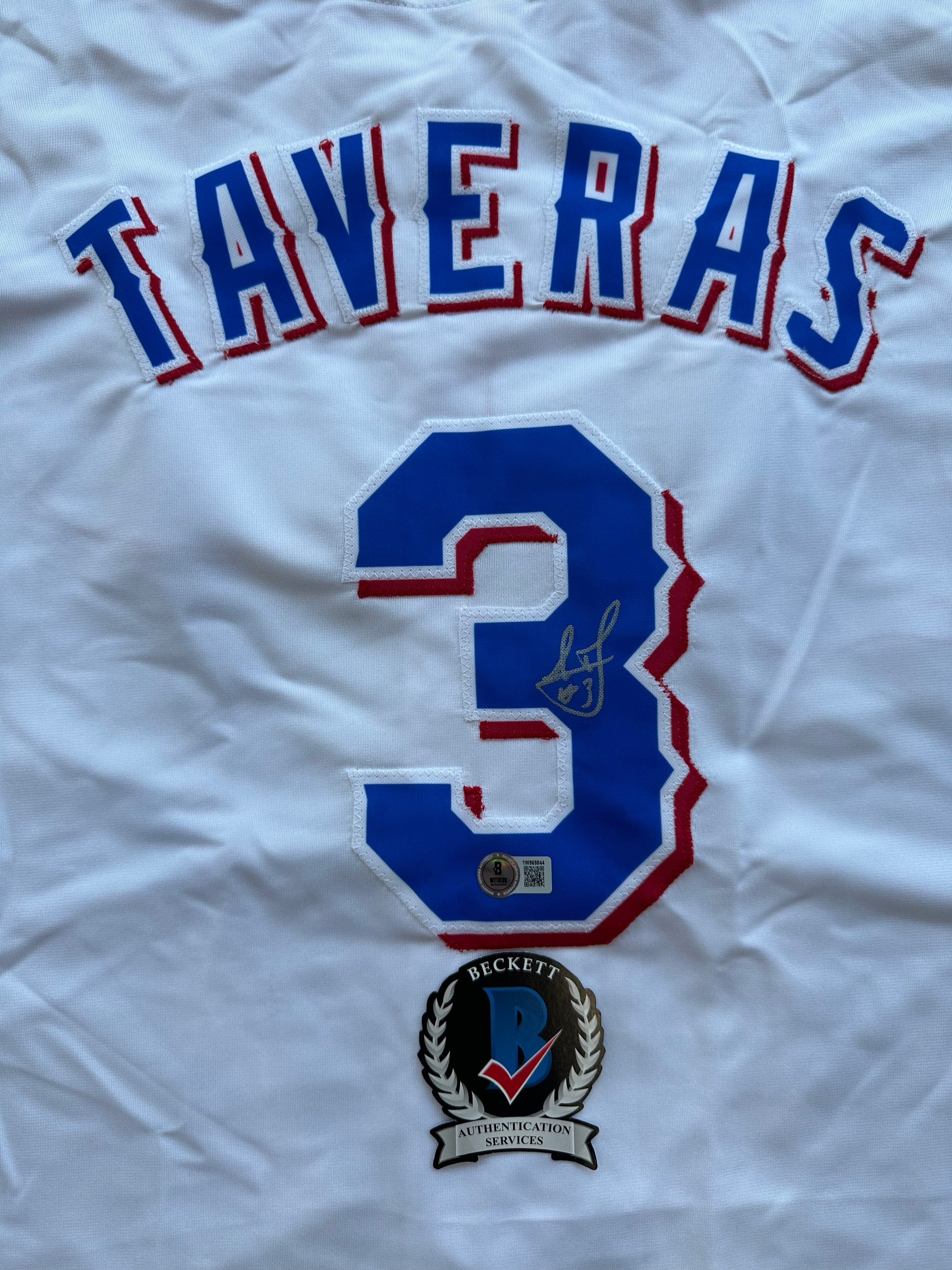 LEODY TAVERAS TEXAS RANGERS SIGNED WHITE JERSEY size XL BAS COA