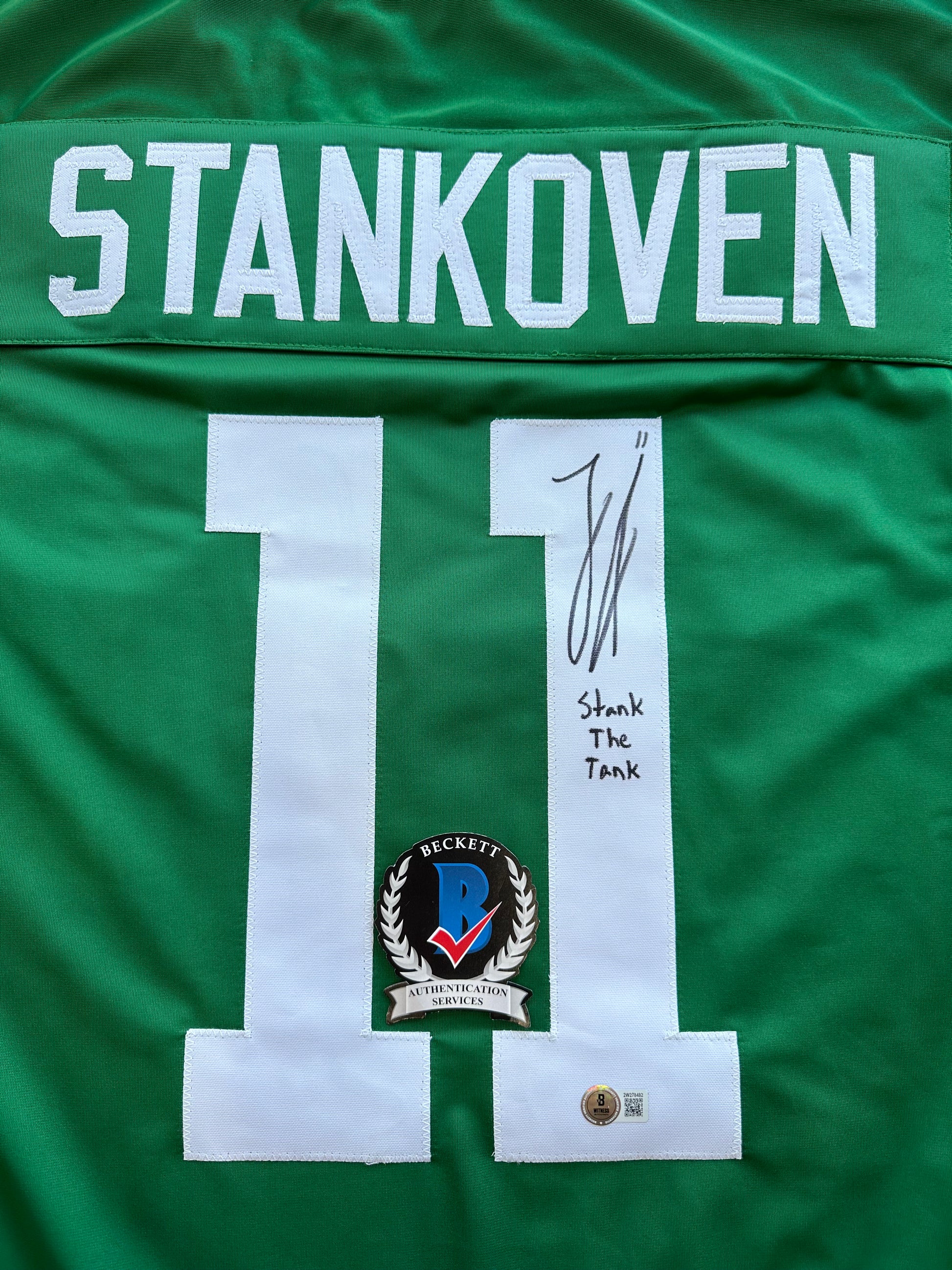 LOGAN STANKOVEN DALLAS STARS SIGNED HOCKEY Road JERSEY w/StanktheTank BAS