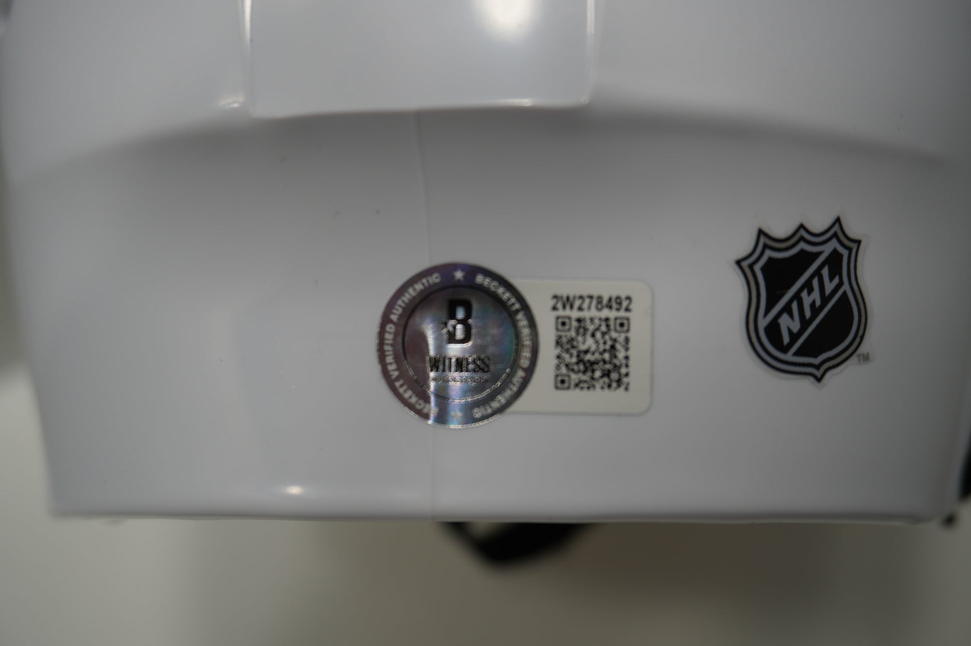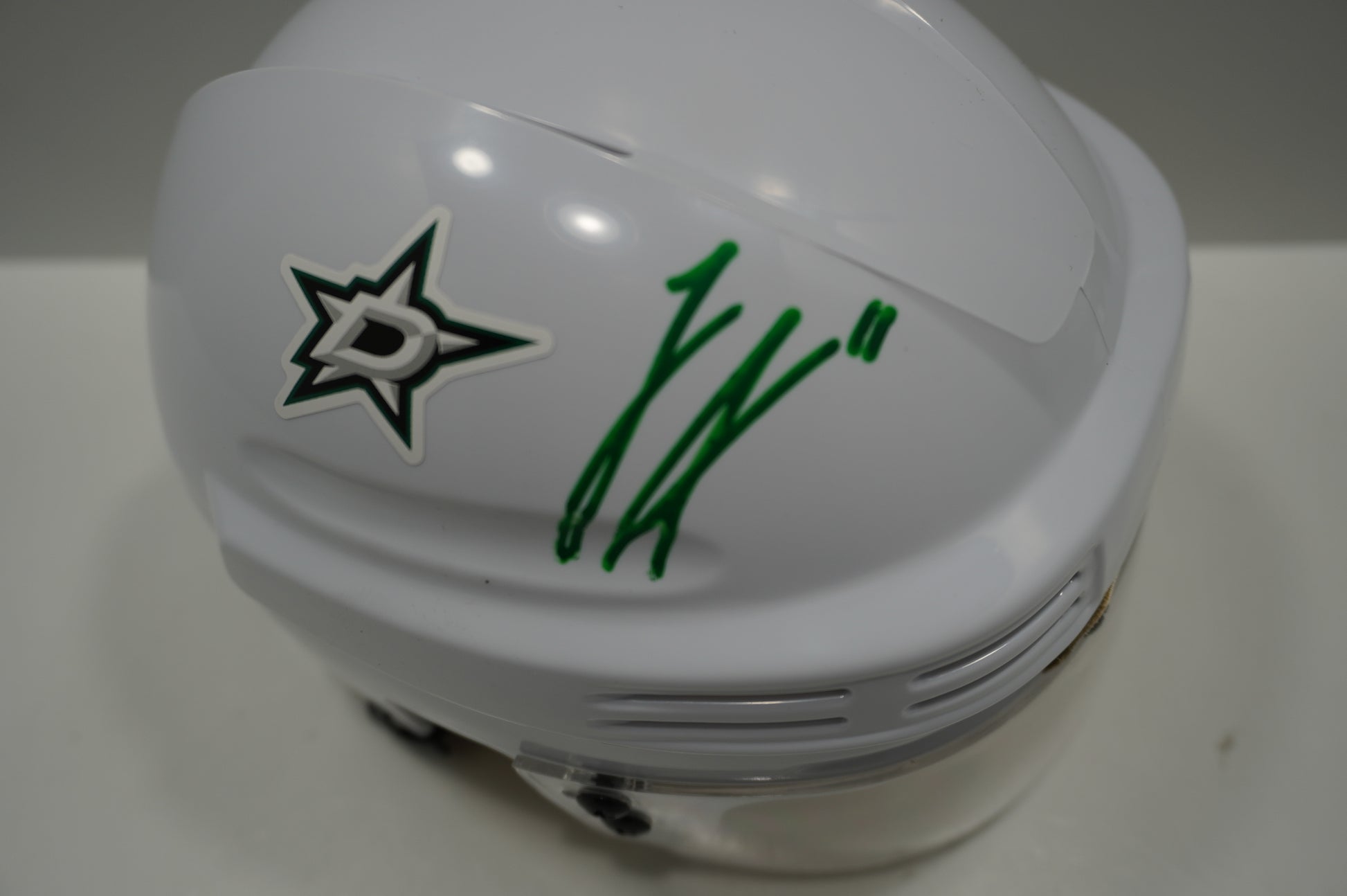 LOGAN STANKOVEN DALLAS STARS SIGNED White Mini Helmet GREEN PAINT BAS COA