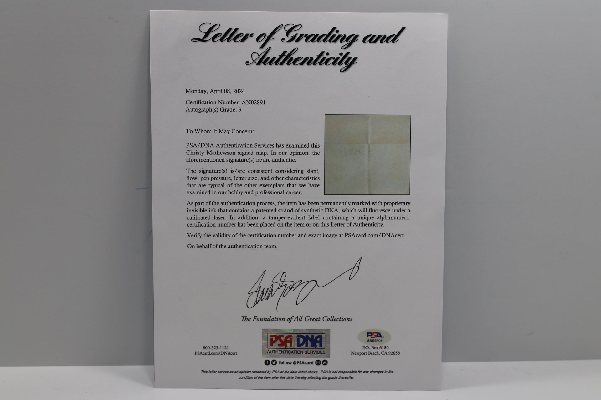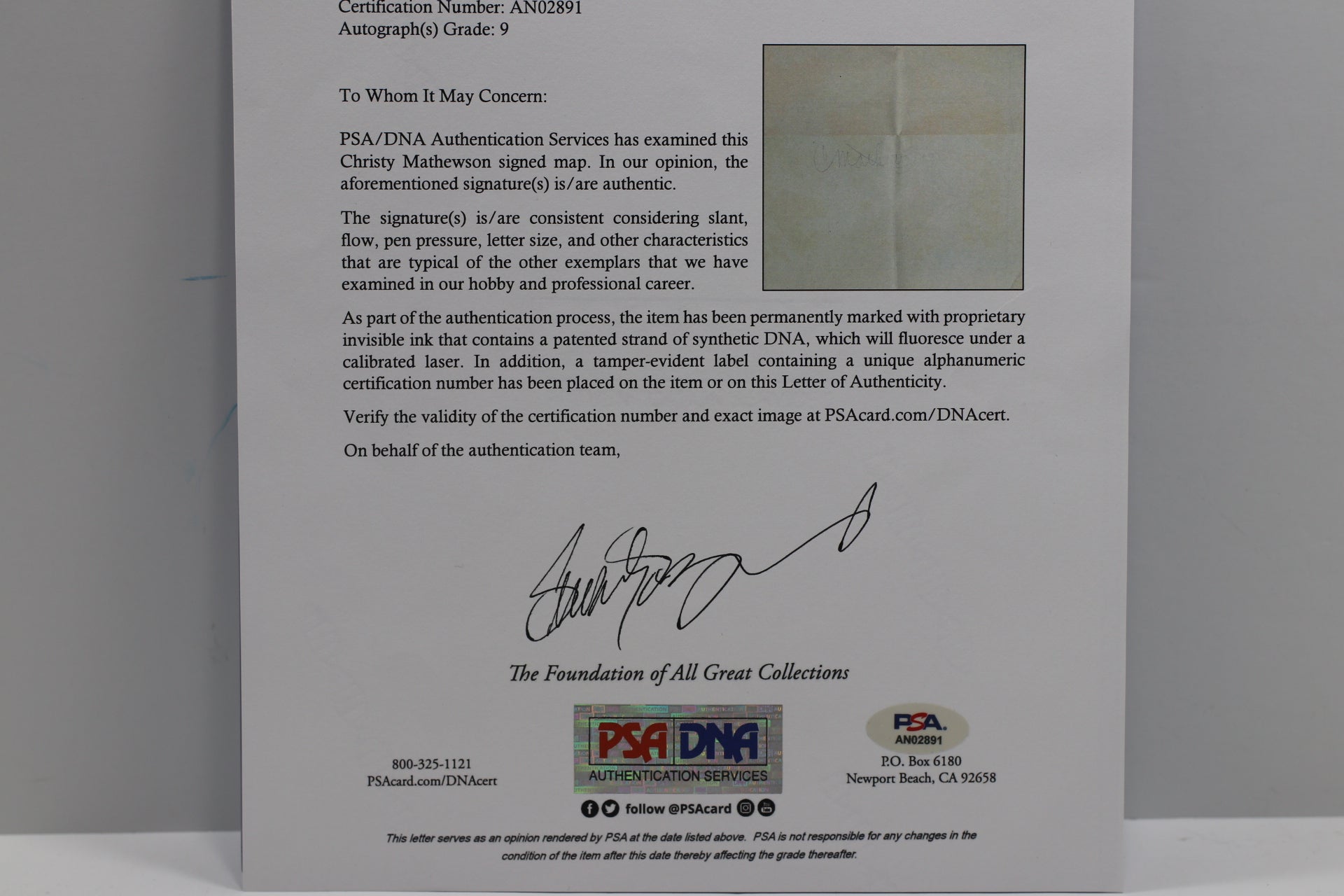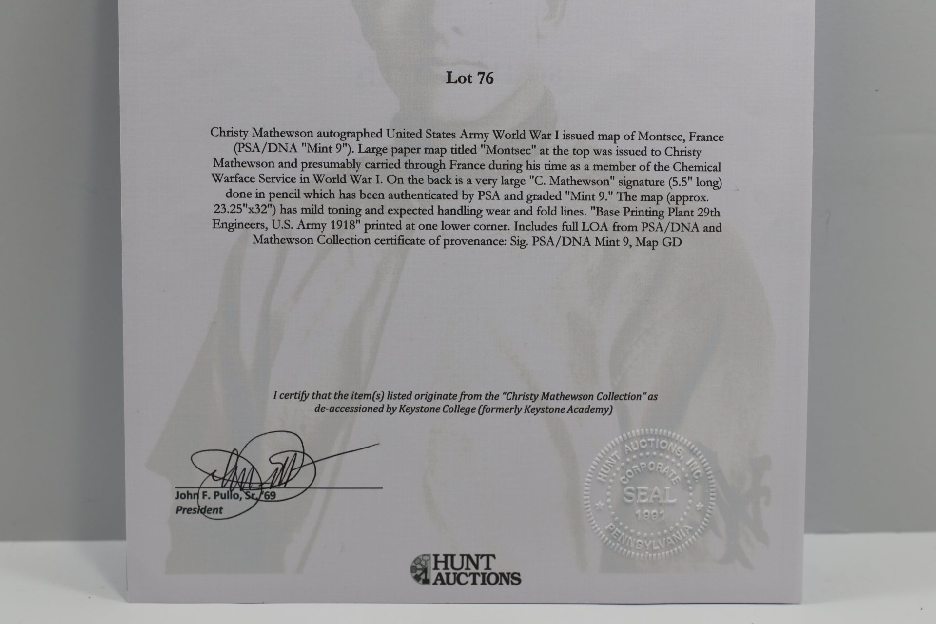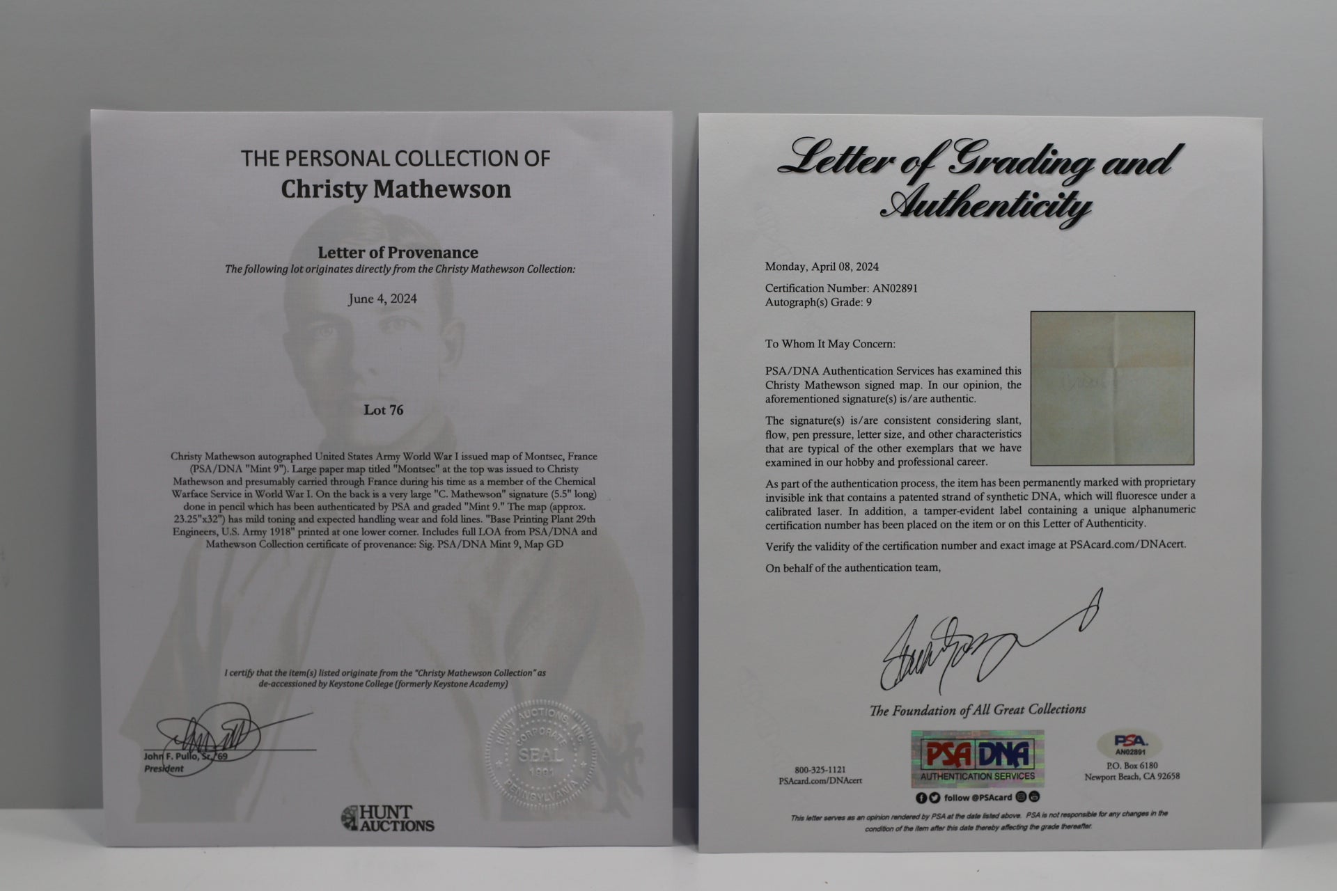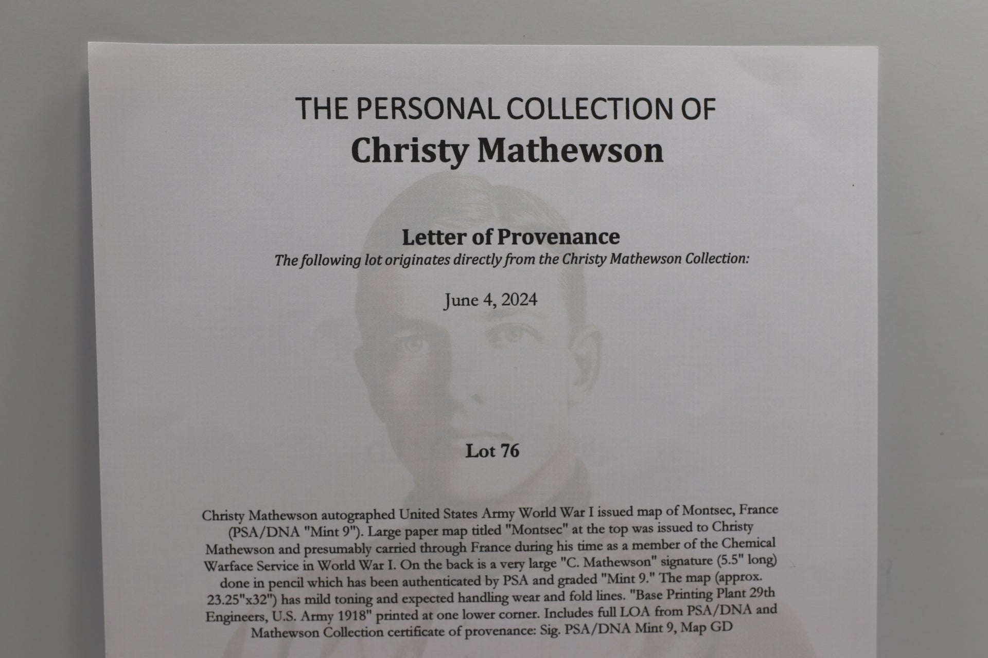 CHRISTY MATHEWSON SIGNED WWI Montsec MAP PSA/DNA NY GIANTS Mint 9 HUGE