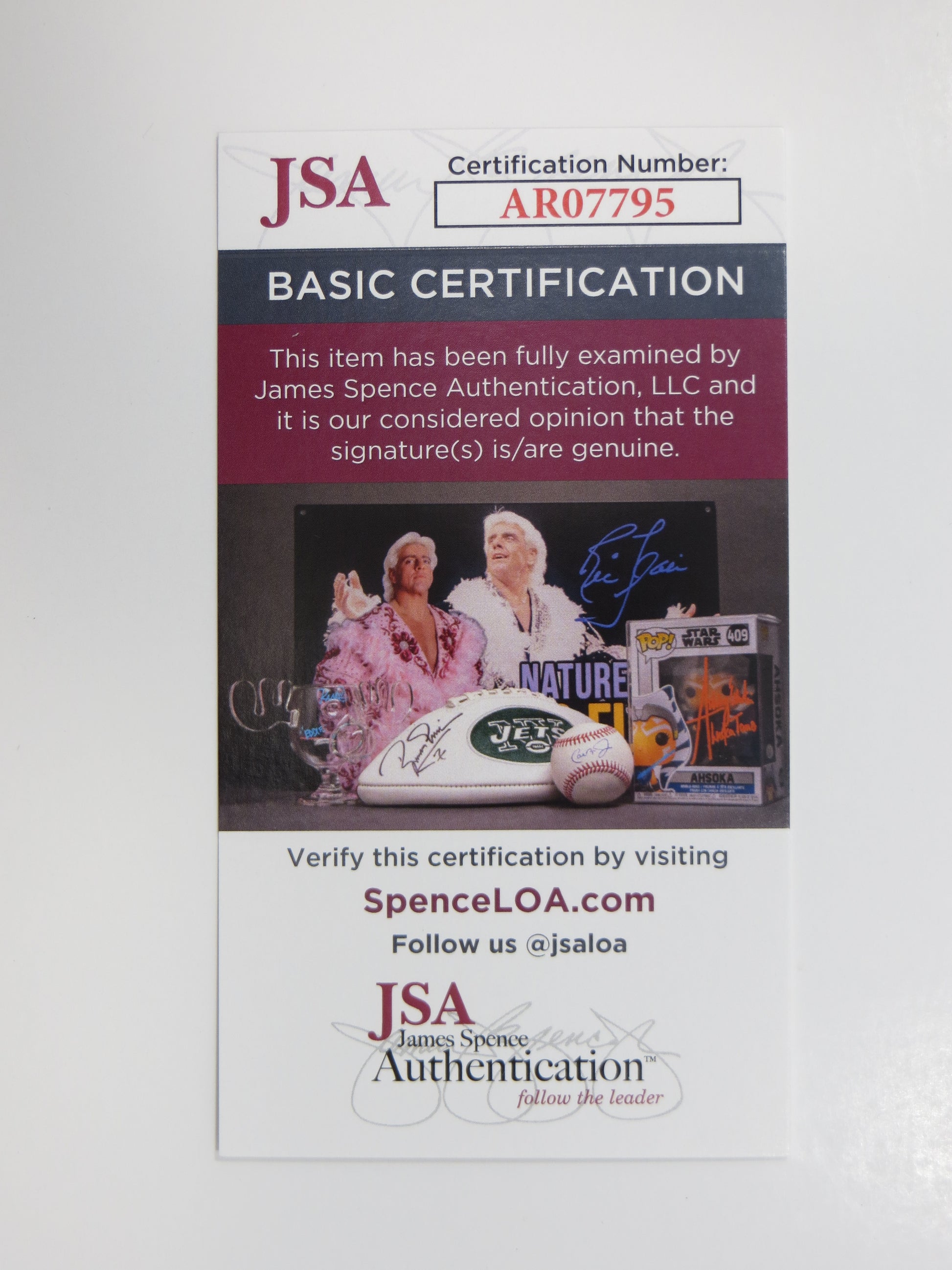 This item comes with a matching numbered sticker to a Certificate of Authenticity card from James Spence Authentication (JSA).