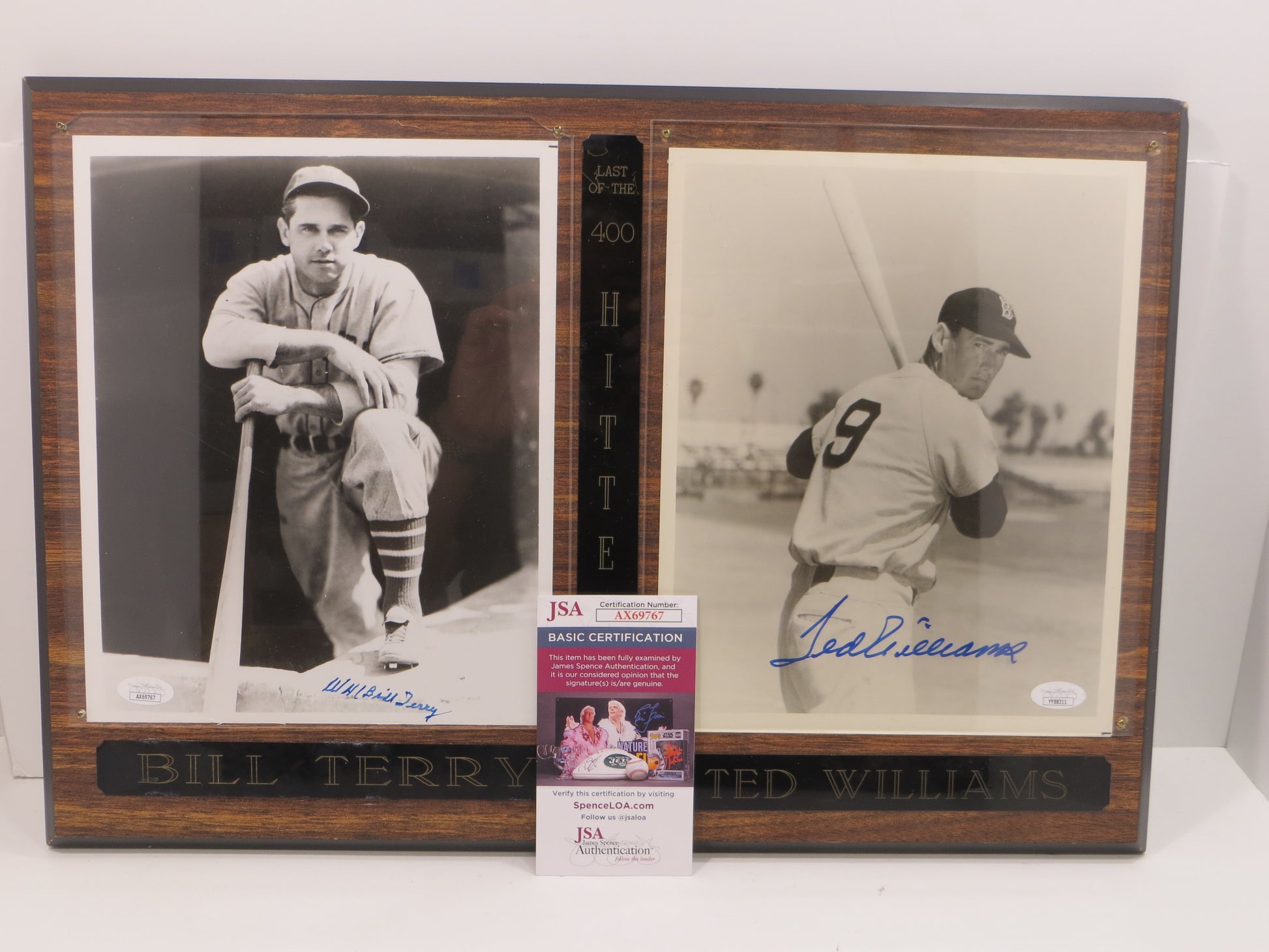 TED WILLIAMS & BILL TERRY SIGNED 400 HITTERS PLAQUE Boston Red Sox NY Giants JSA