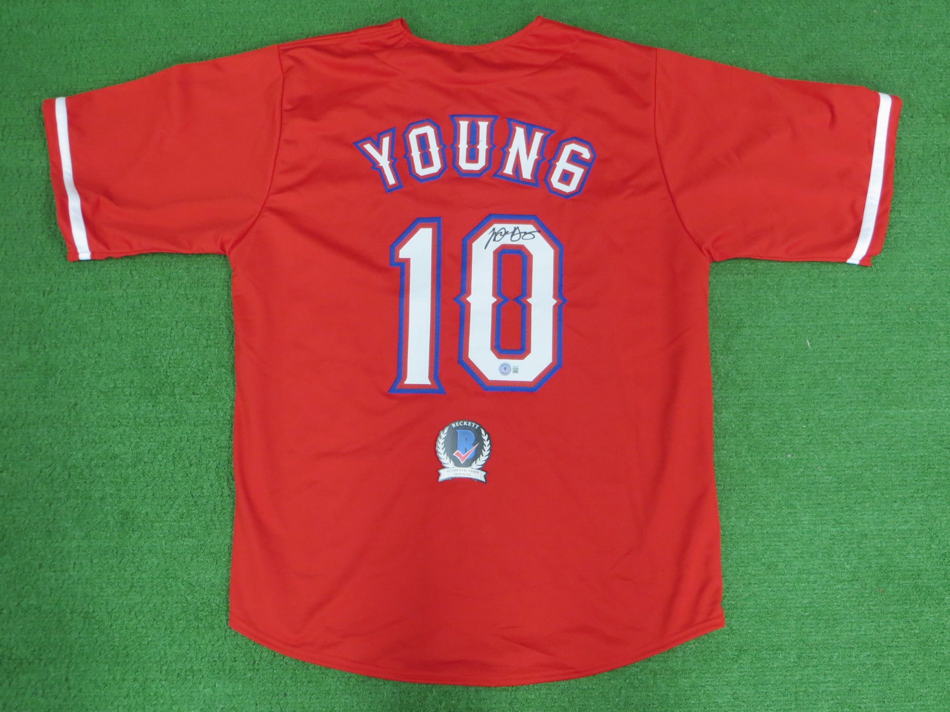 MICHAEL YOUNG TEXAS RANGERS SIGNED RED JERSEY size XL BAS COA