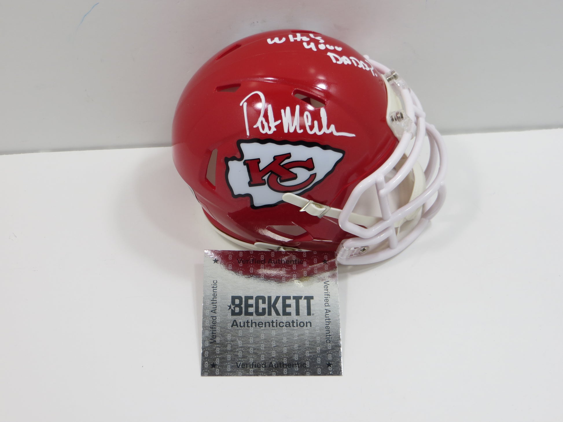 PAT PATRICK MAHOMES SR. KANSAS CITY CHIEFS SIGNED MINI HELMET w/INSC BAS COA