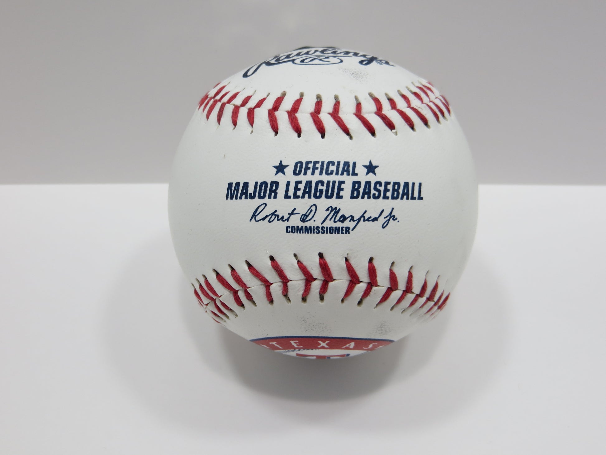 PAT PATRICK MAHOMES SR SIGNED LOGO BASEBALL Texas Rangers w/Go Rangers BAS