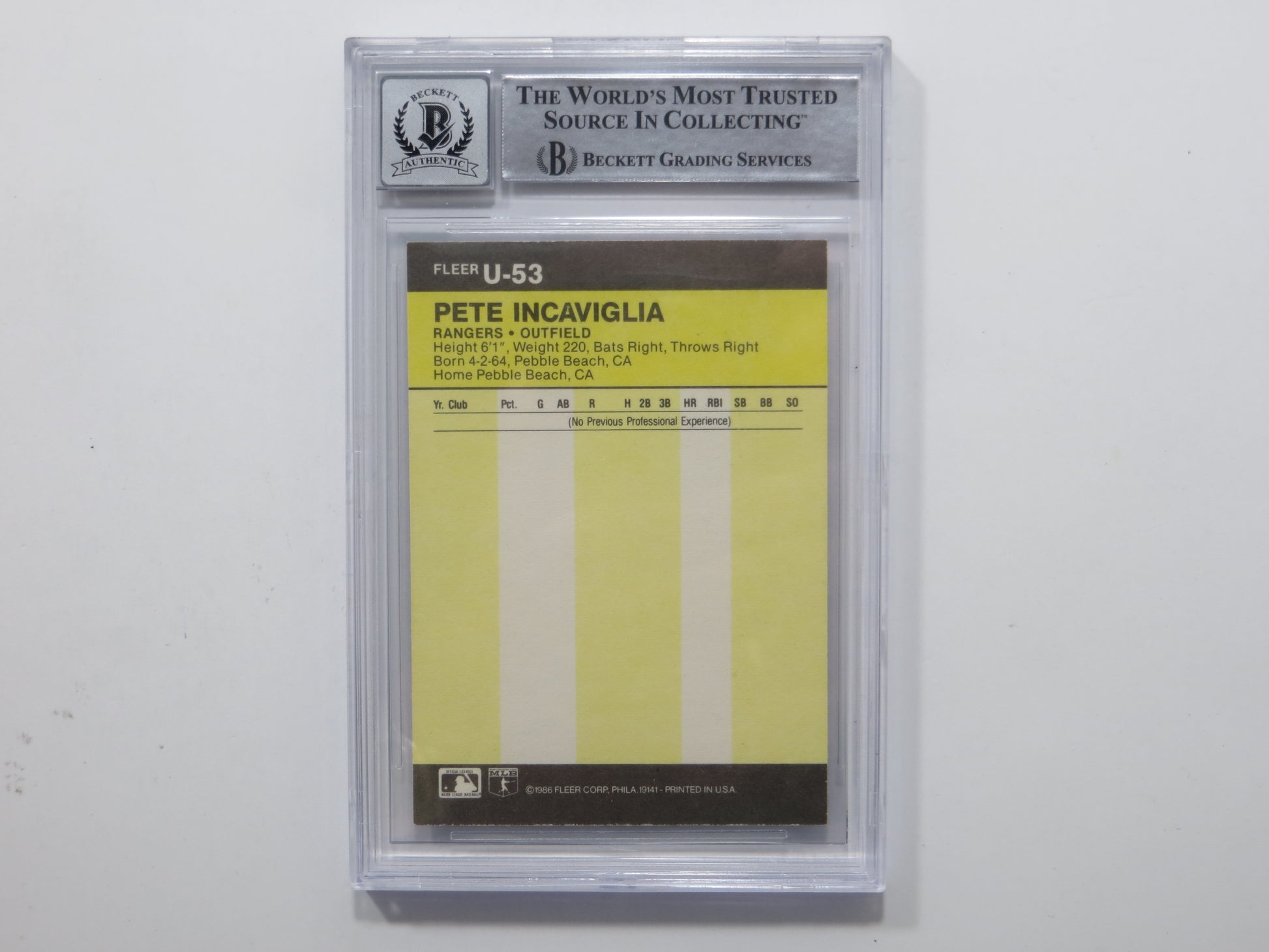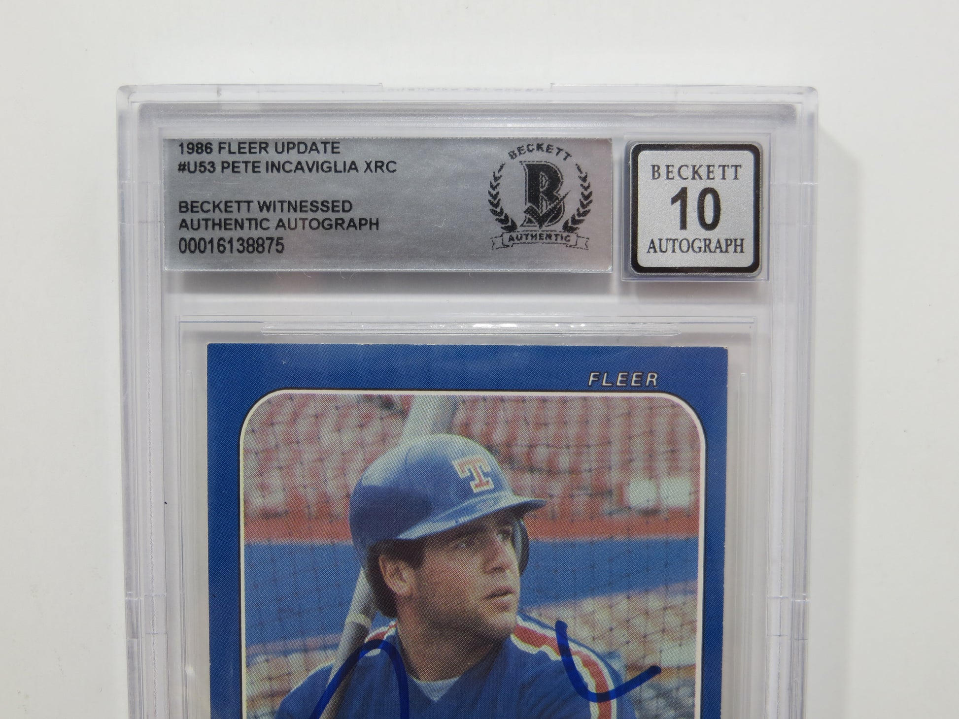 PETE INCAVIGLIA SIGNED BGS BAS SLAB 1986 FLEER UPDATE #U53 XRC Auto 10 RANGERS