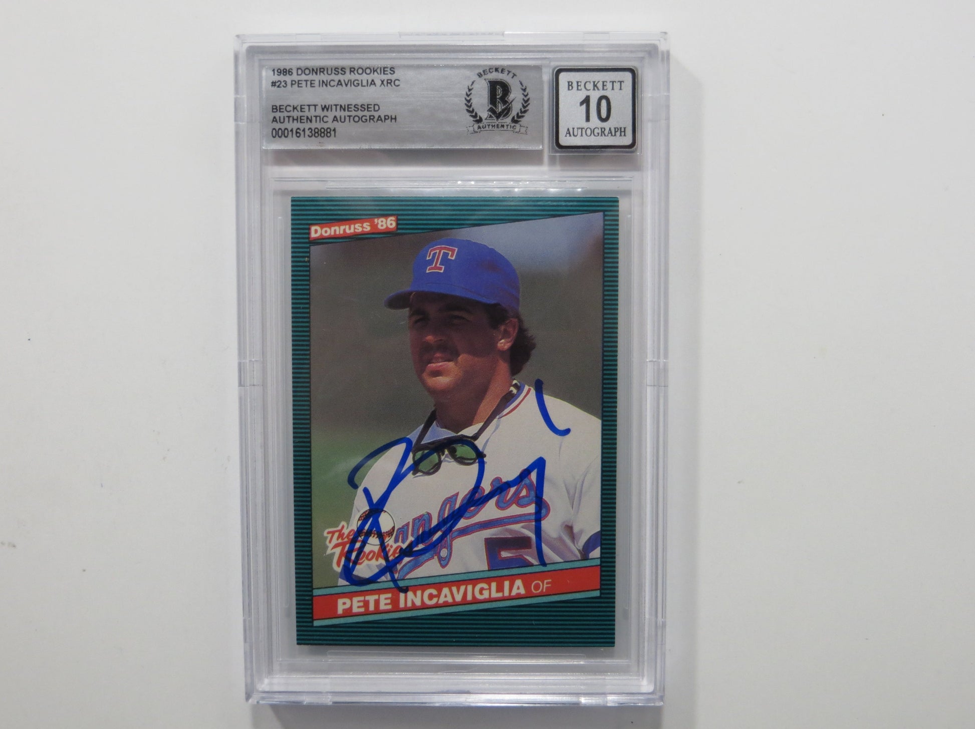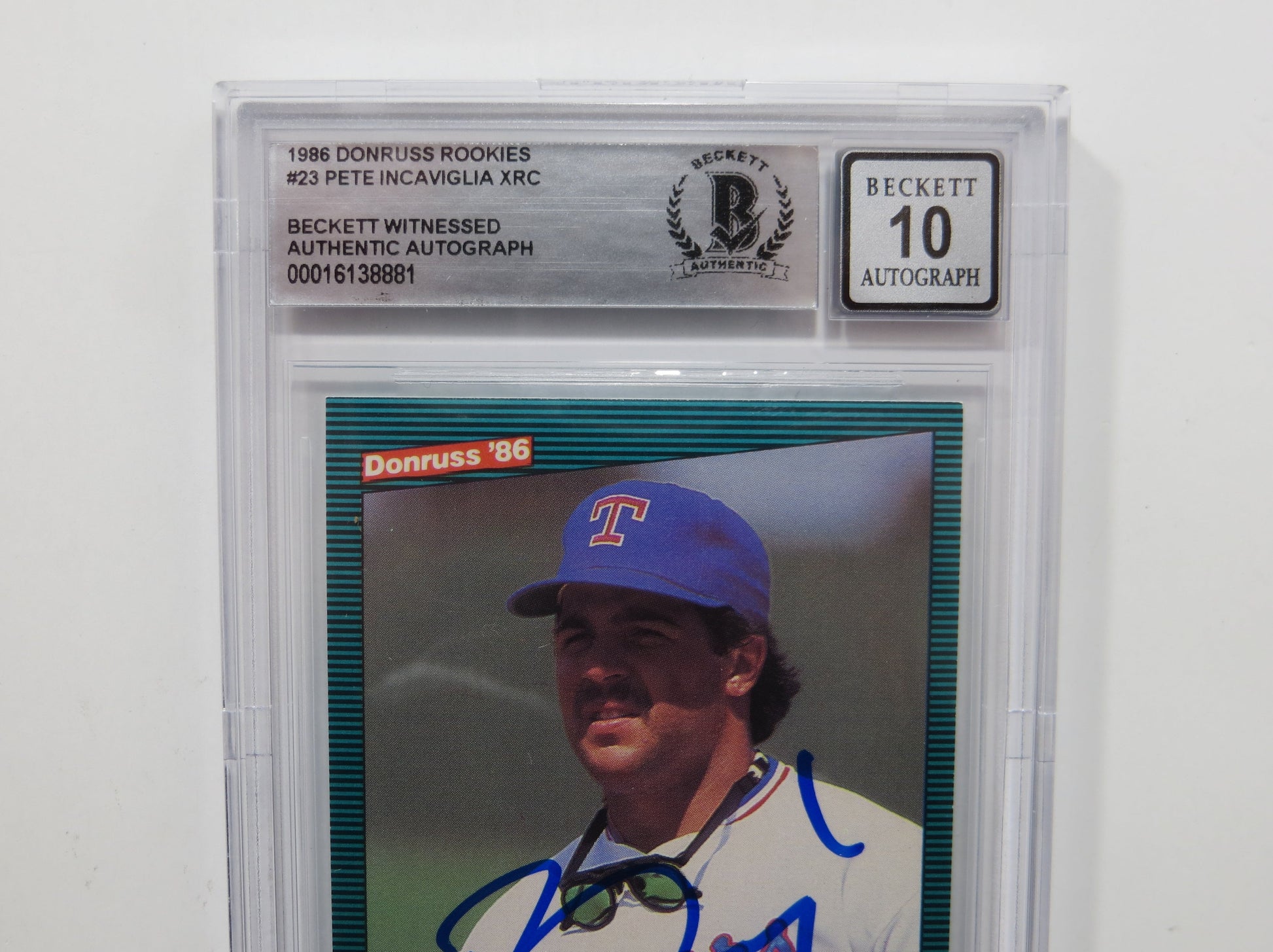 PETE INCAVIGLIA SIGNED BGS BAS SLAB 1986 DONRUSS Rookies #23 XRC Auto 10 RANGERS