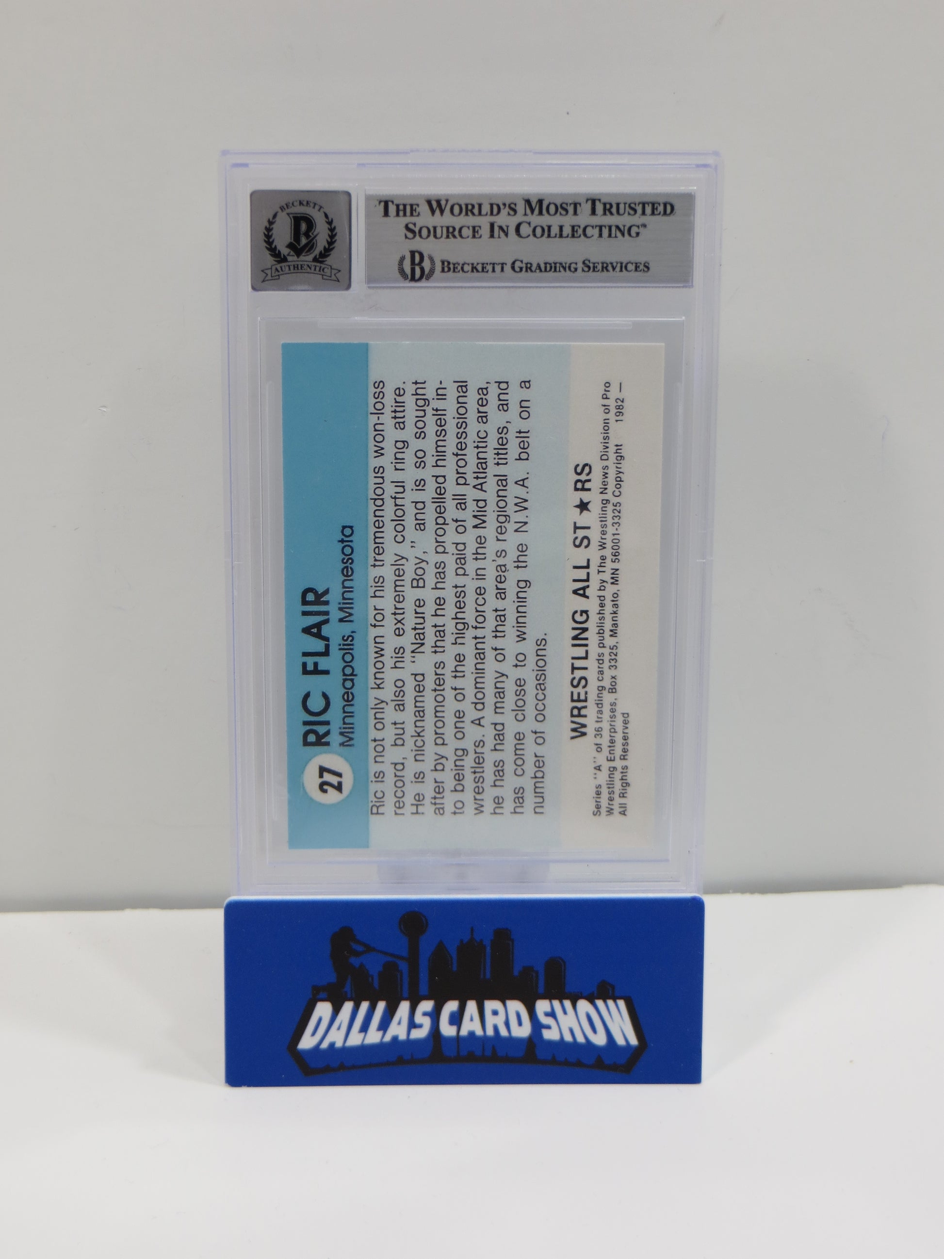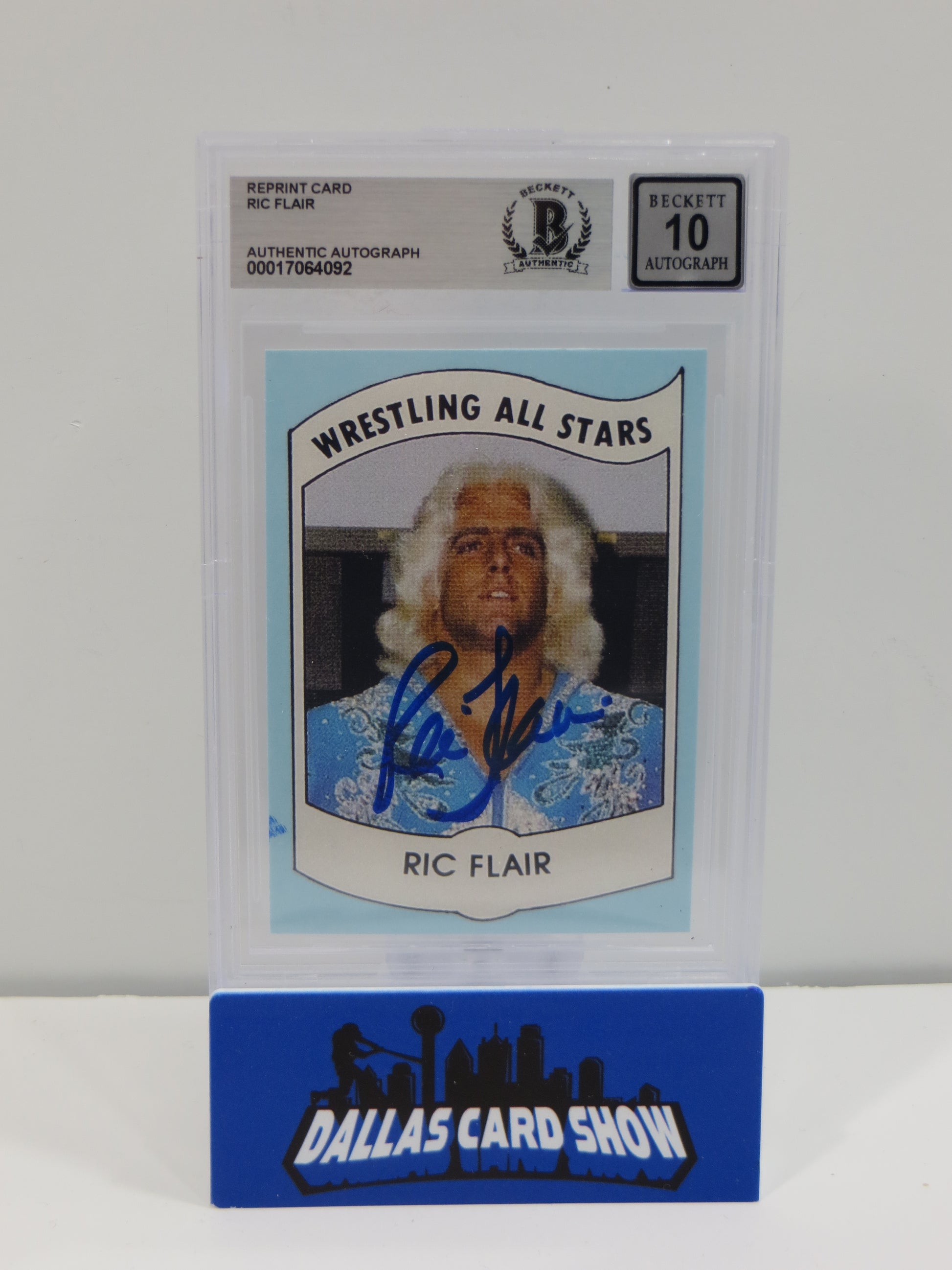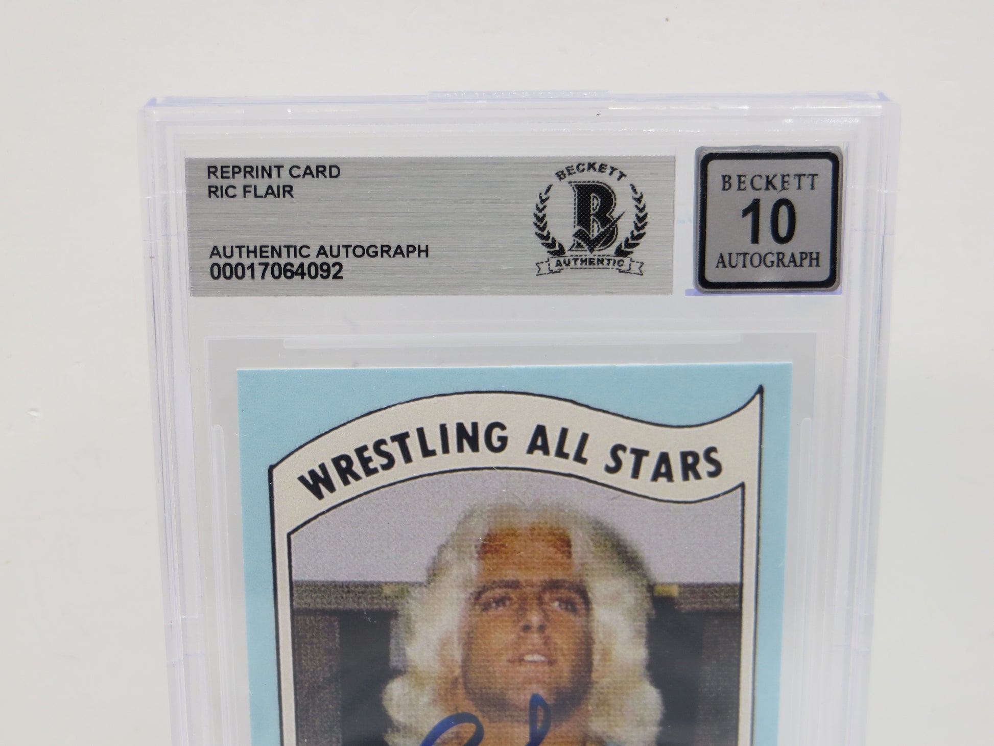 RIC FLAIR SIGNED 1982 Wrestling All Stars REPRINT Card BGS BAS SLAB AUTO 10
