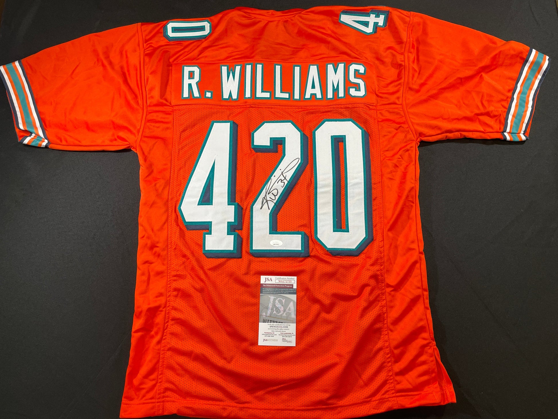 RICKY WILLIAMS ORANGE MAIMI DOLPHINS 420 SIGNED JERSEY JSA