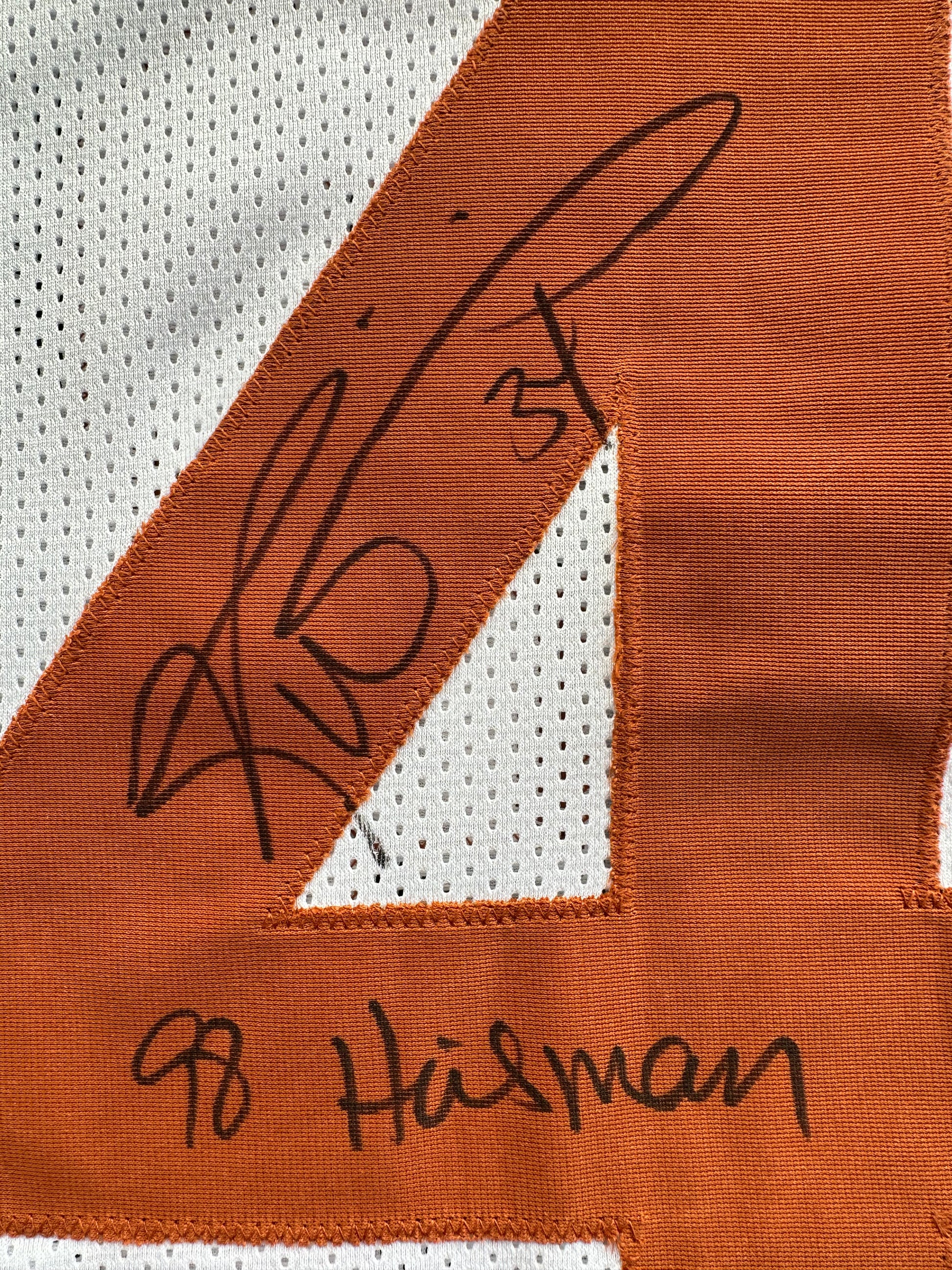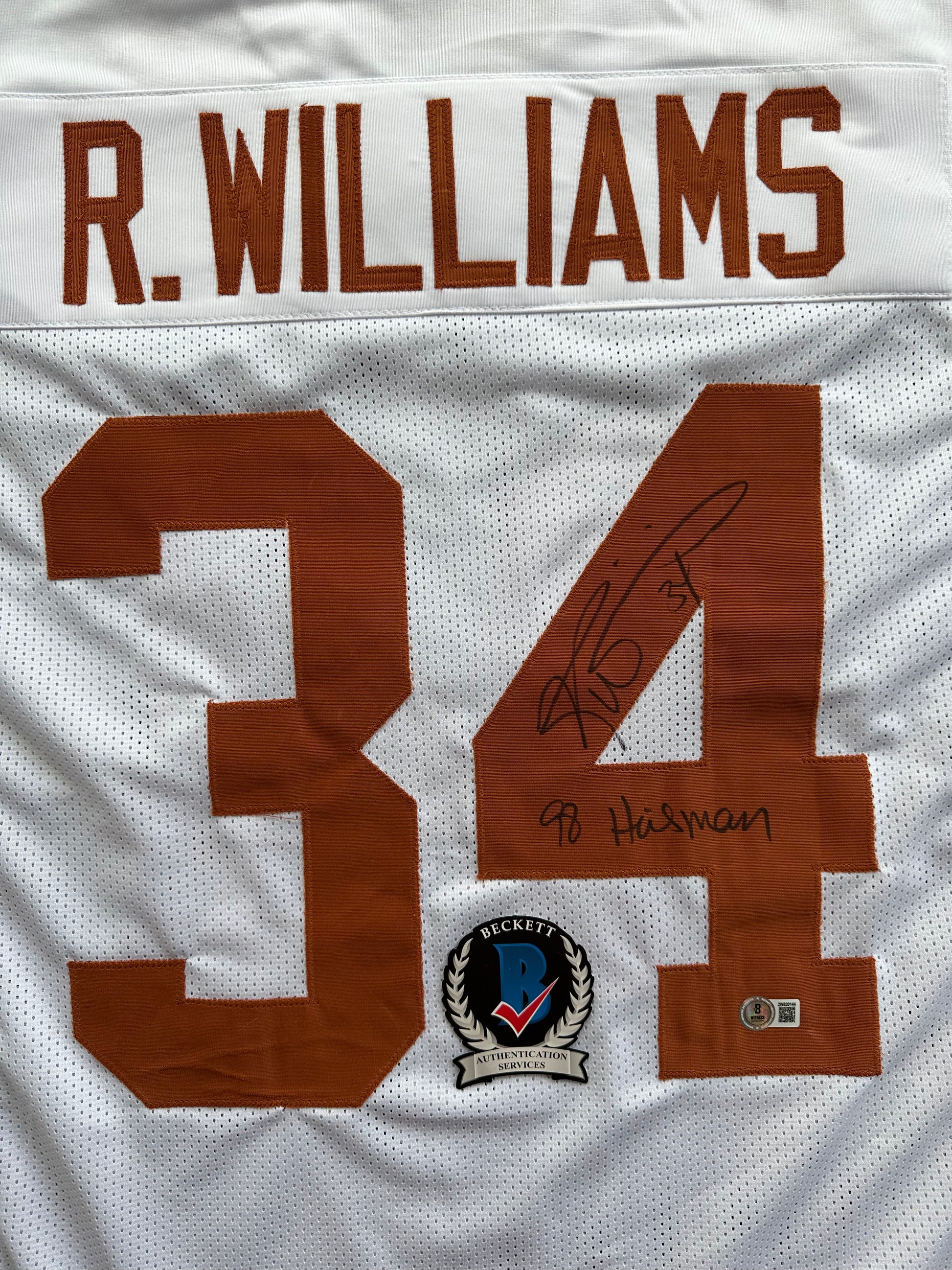 RICKY WILLIAMS SIGNED WHITE FOOTBALL JERSEY Texas Longhorns w/ "98 Heisman" BAS