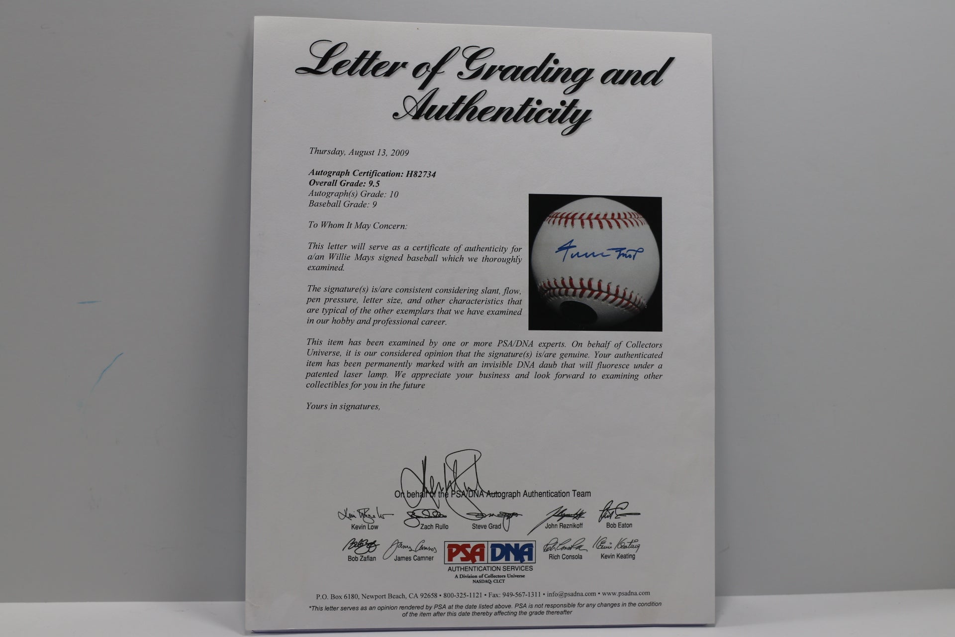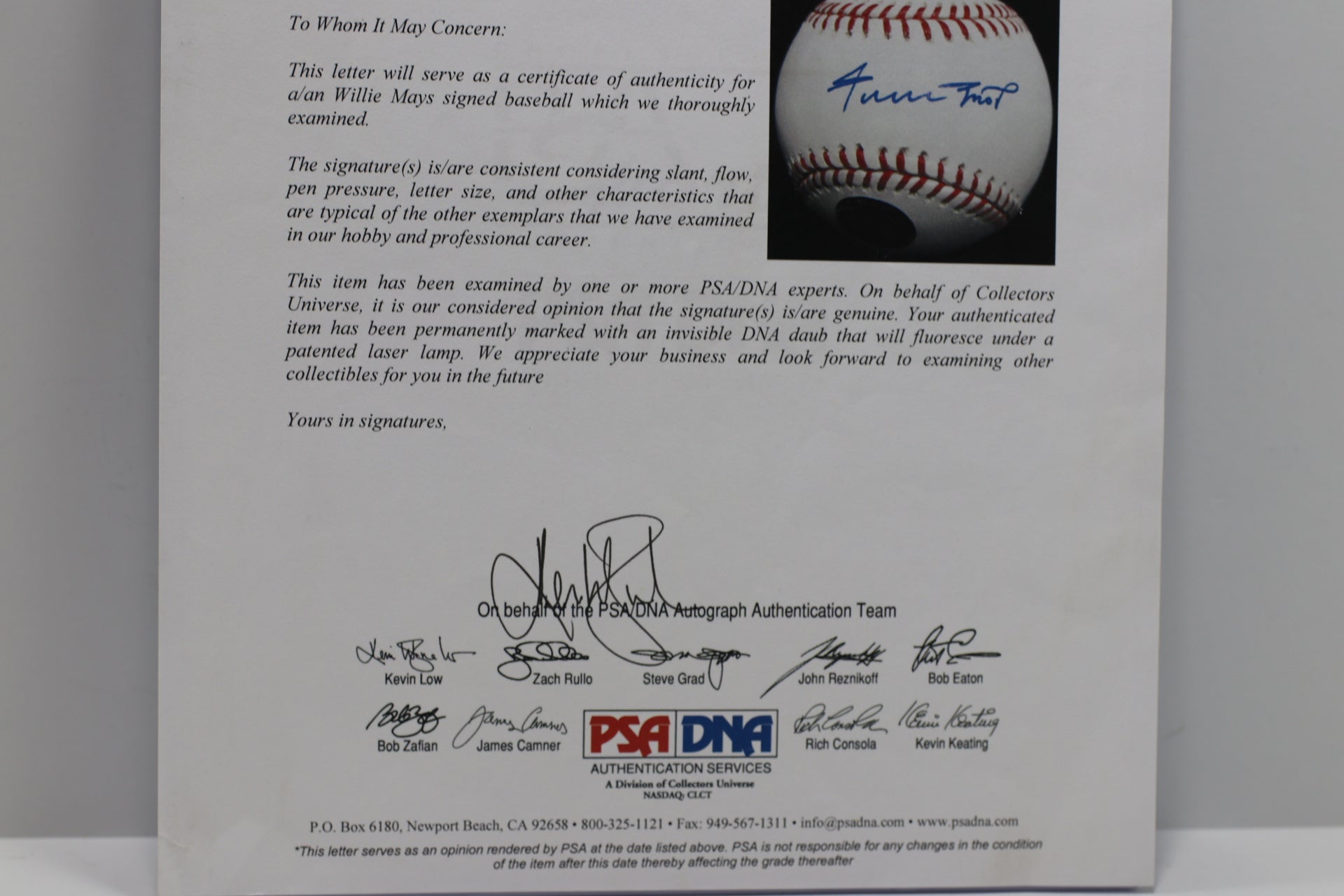 PSA/DNA FULL LETTER OF AUTHENTICATION