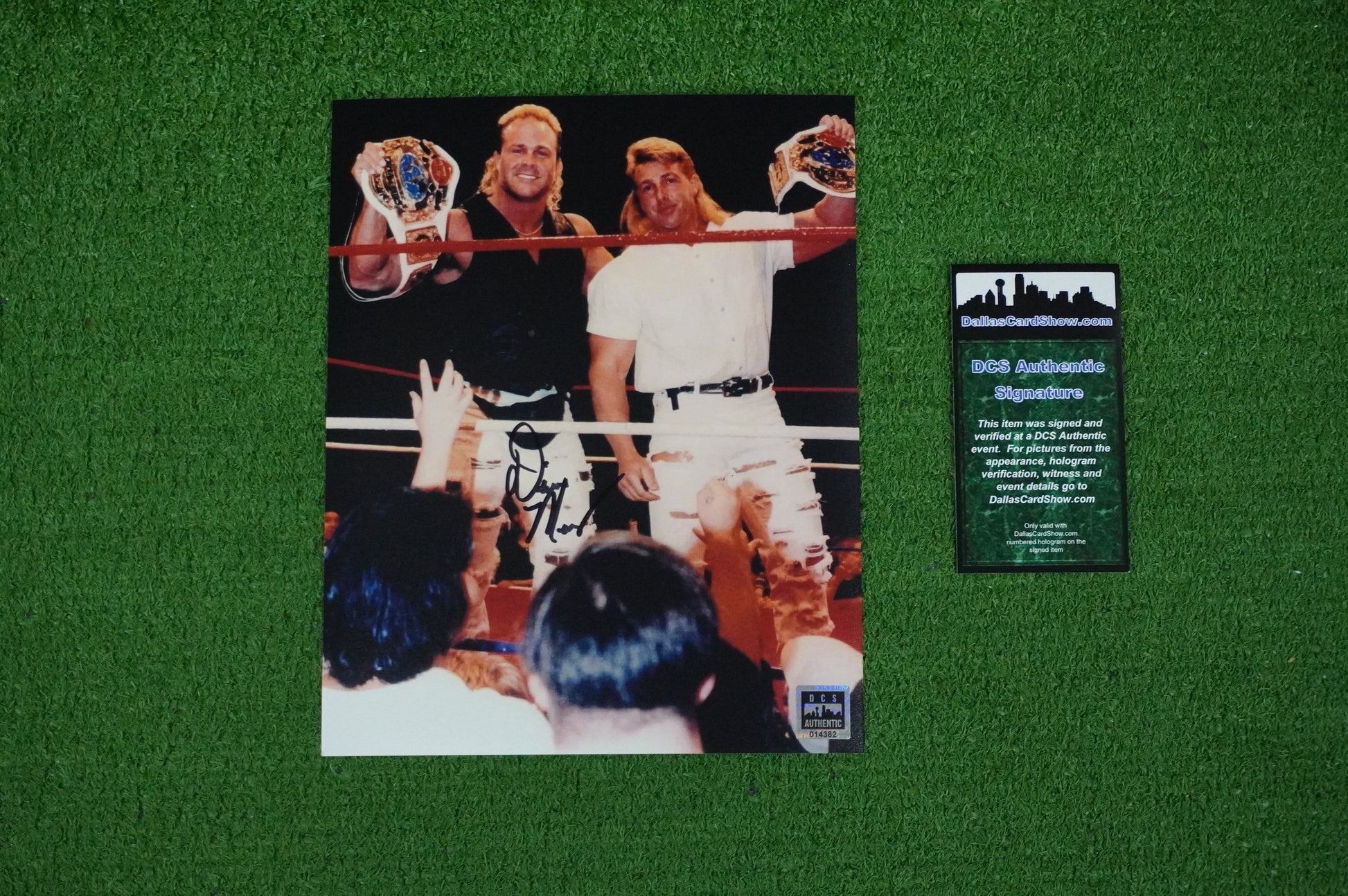 This item comes with a numbered hologram sticker and a Certificated of Authenticity card from Dallas Card Show Authentic (DCS).