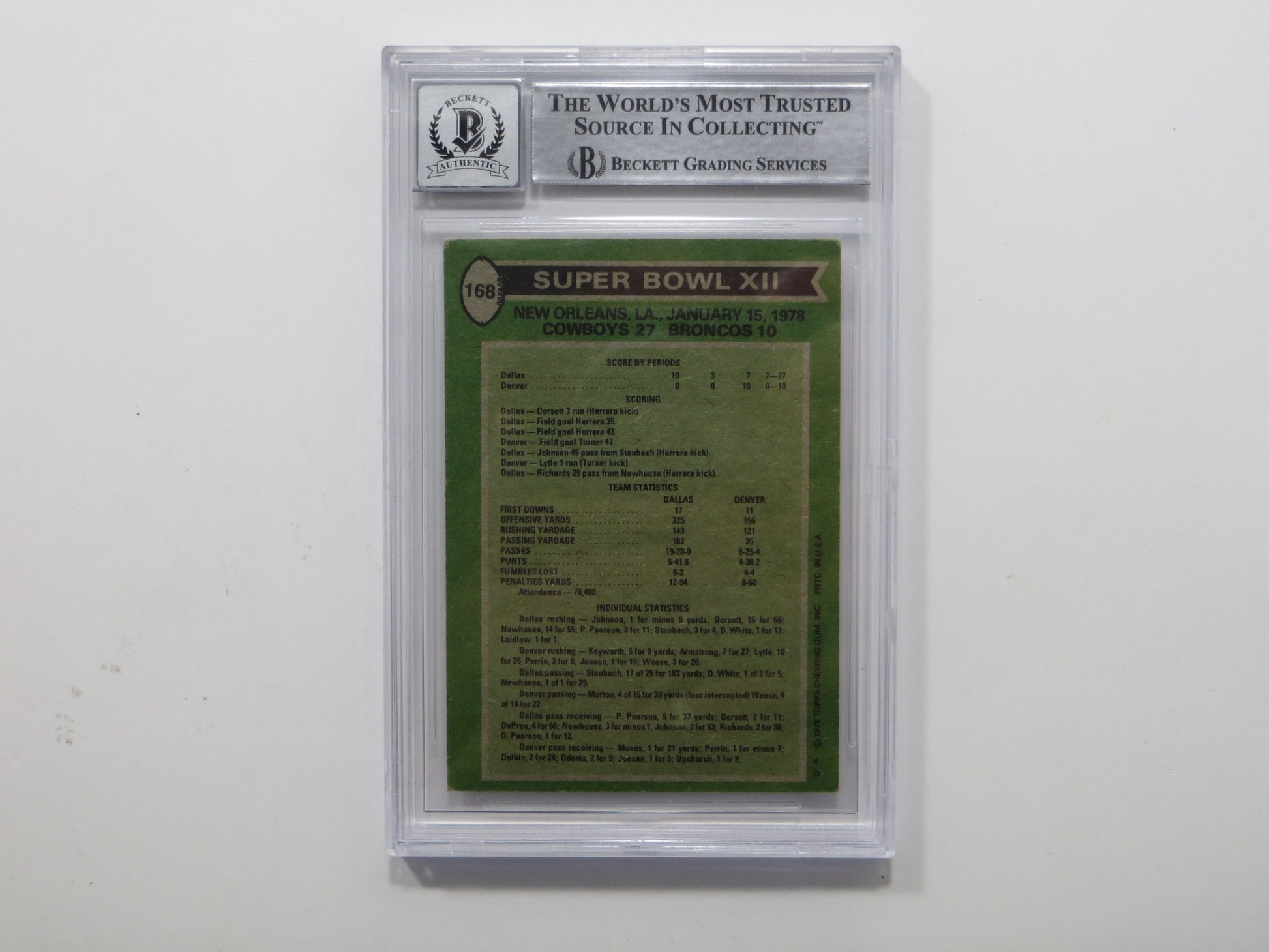 TONY DORSETT SIGNED 1978 Topps #168 ROOKIE YEAR BGS Slab COWBOYS Auto 10