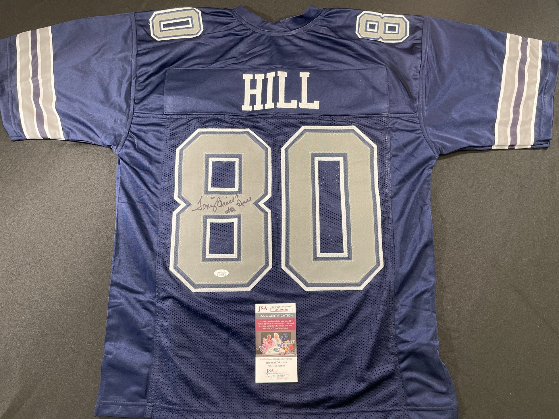 TONY HILL DALLAS COWBOYS SIGNED BLUE JERSEY size L JSA COA