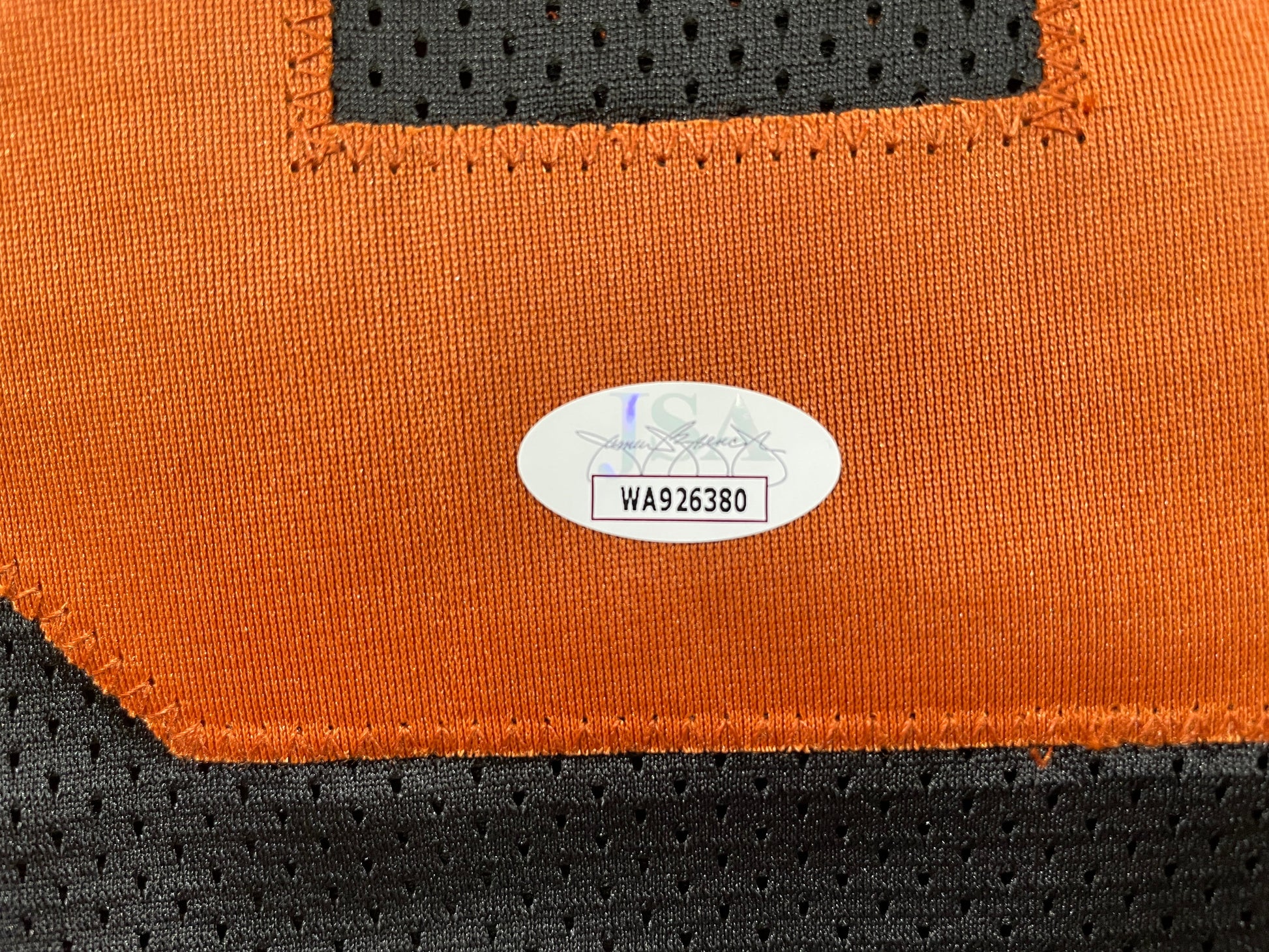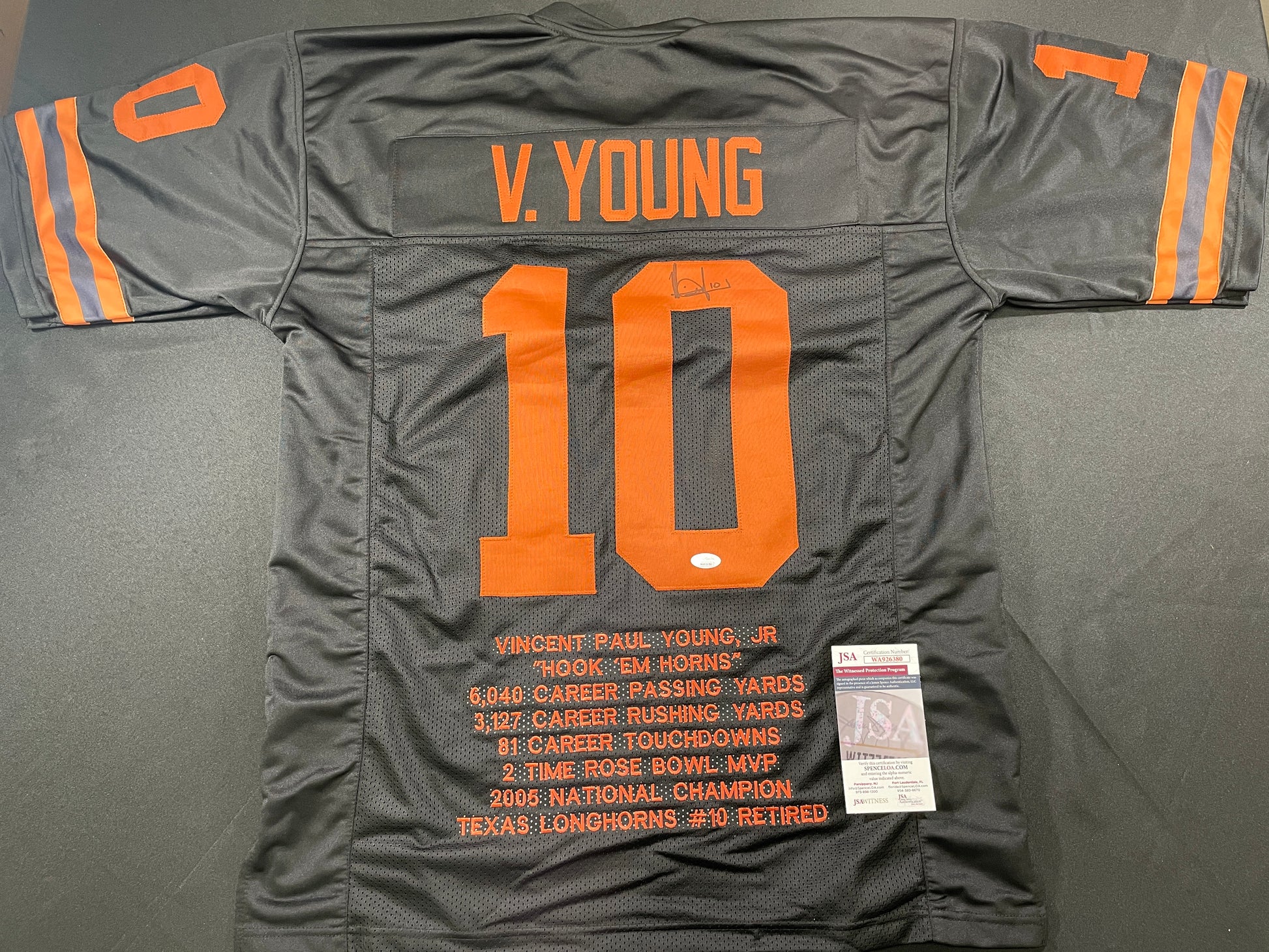 VINCE YOUNG BLACK TEXAS LONGHORNS SIGNED STAT JERSEY JSA COA