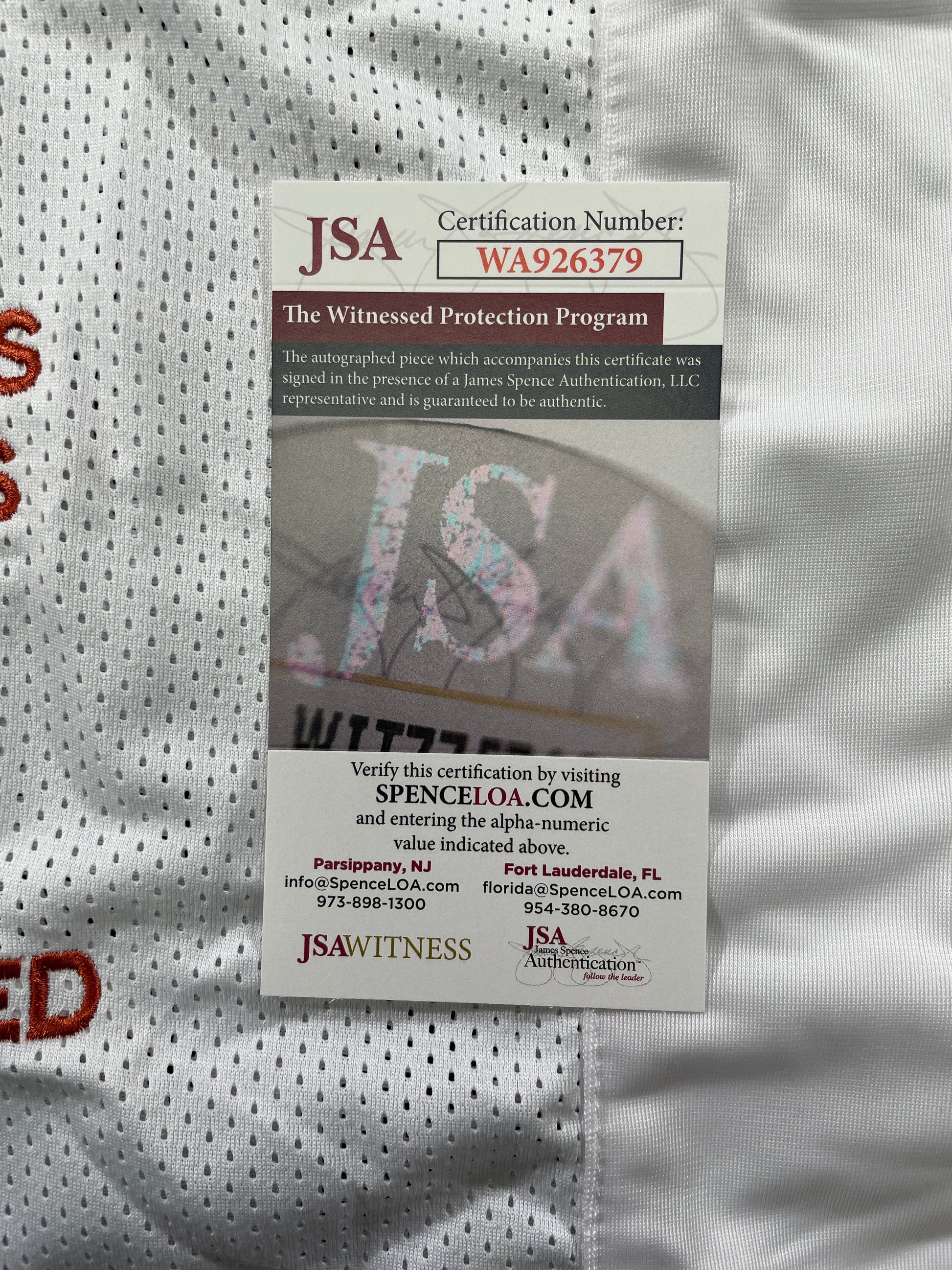 VINCE YOUNG WHITE TEXAS LONGHORNS SIGNED STAT JERSEY JSA COA